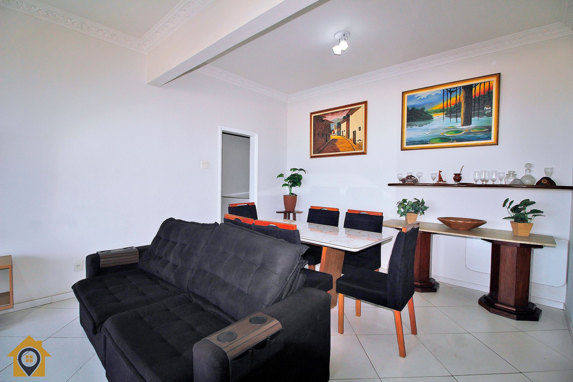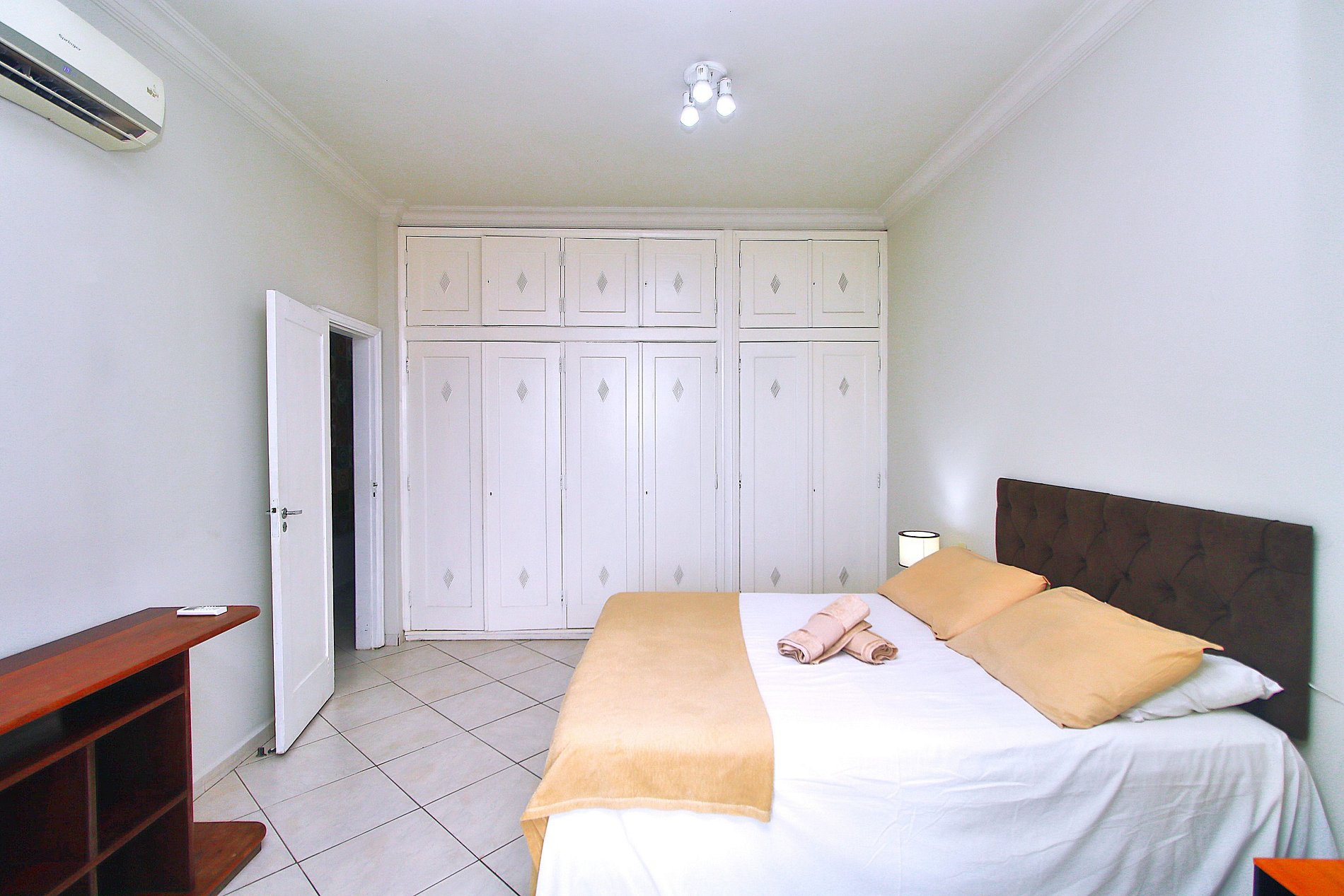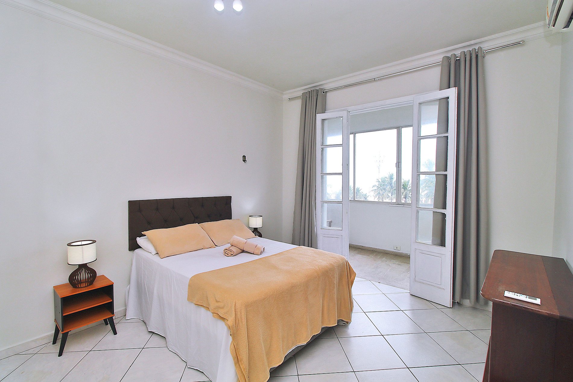 •Sala: Mesa de jantar, sofá retrátil, Smart Tv, vista para o mar •Cozinha: Geladeira, fogão 5 bocas, microondas, cafeteira, filtro de água, sanduicheria, jogo de panelas completo, etc… •Quarto 1: 1 cama de casal, ar condicionado, varanda com vista mar •Quarto 2: 1 cama de casal e 1 de solteiro, ar condicionado com vista mar •Quarto 3: 2 bicamas de solteiro, ar condicionado. •Banheiros: Box de vidro com chuveiro elétrico.