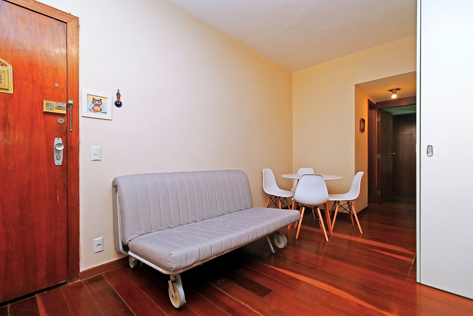 Apartamento em uma das ruas principais de Copacabana, 2 quadras da praia p/ 6 pessoas. Divido em sala, 2 quartos, banheiro, lavabo, cozinha e área de serviço. Nos quartos temos cama box e ar-condicionado. Na sala temos uma Smartv, sofá cama, mesa de jantar e ar condicionado. Na cozinha fogão, geladeira, microondas, cafeteira e sanduicheira. Disponibilizamos roupas de cama e banho.