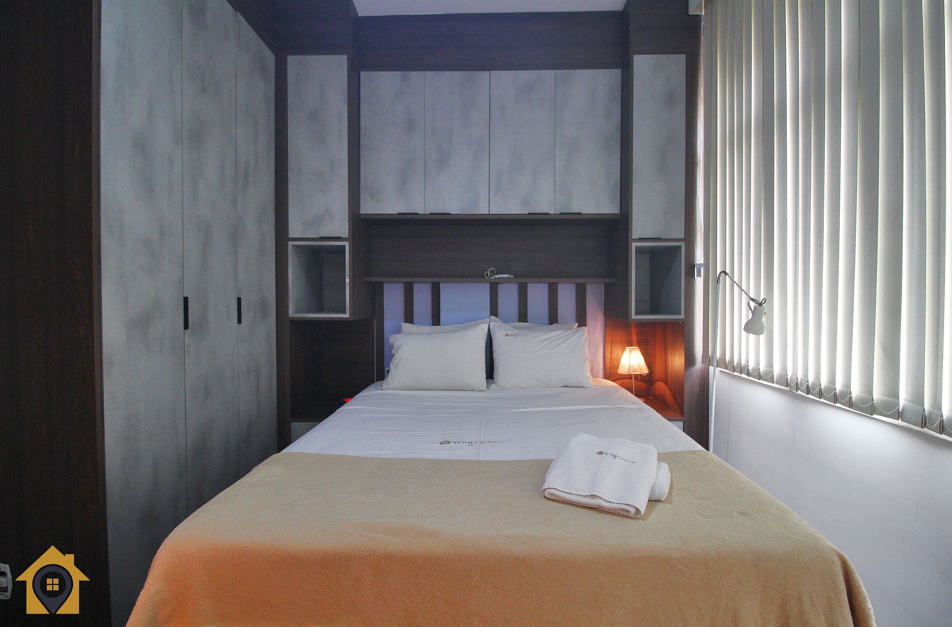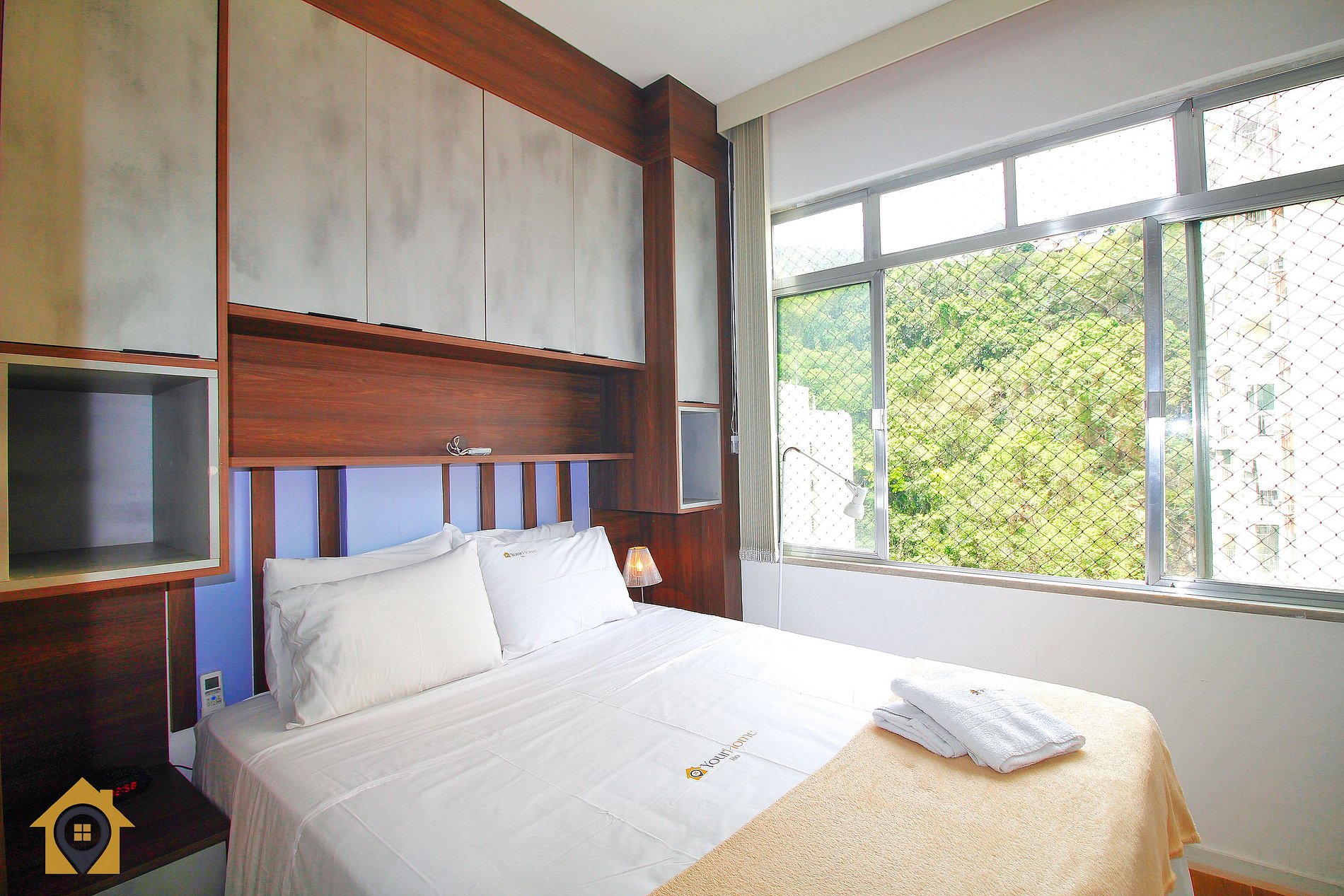 Este apartamento oferece conforto e praticidade para até 3 pessoas, com ambientes bem distribuídos e ótima estrutura. No quarto principal, você encontra uma cama de casal, mesa de trabalho/estudo com cadeira, ar-condicionado, ventilador de teto, espelho e janela voltada para a rua, garantindo boa iluminação natural.