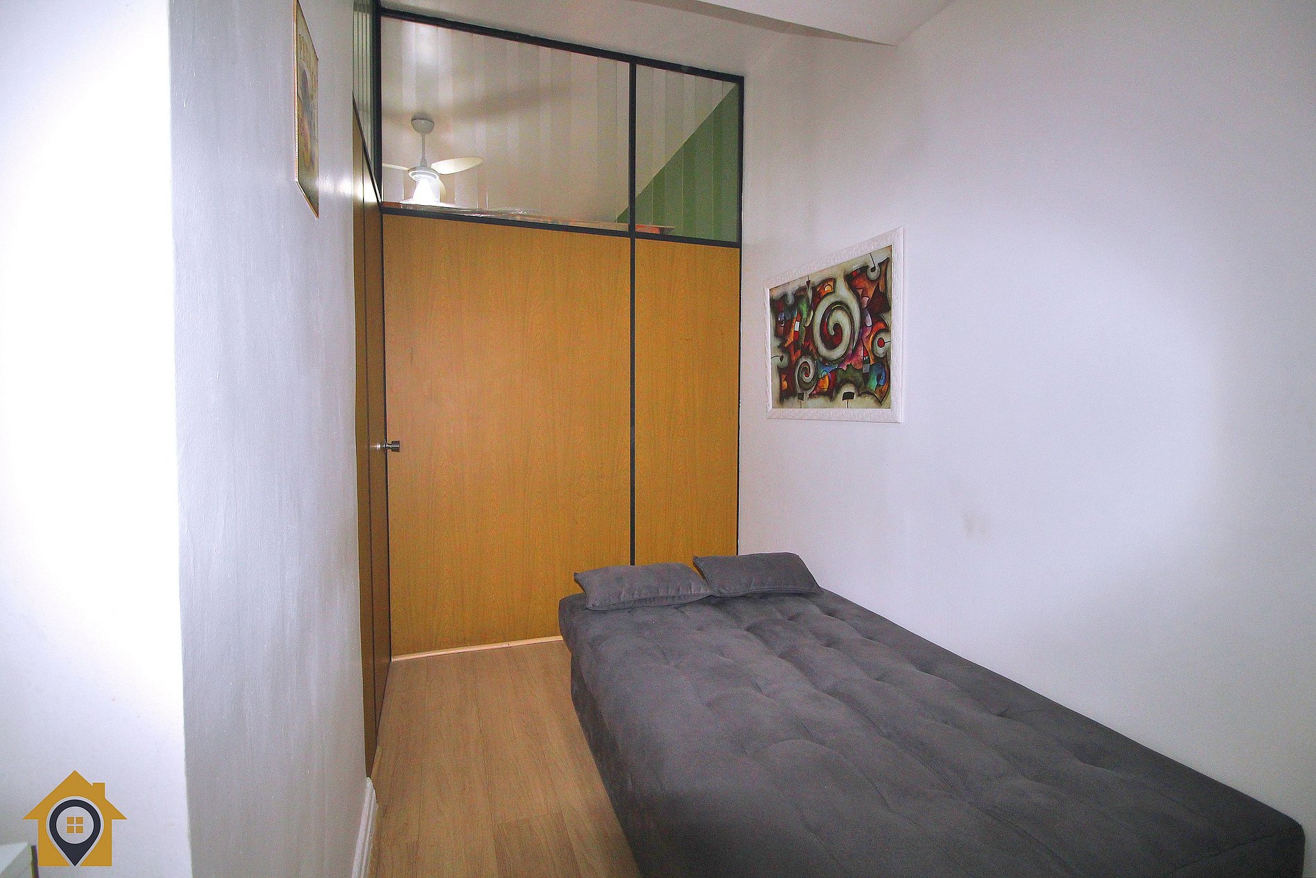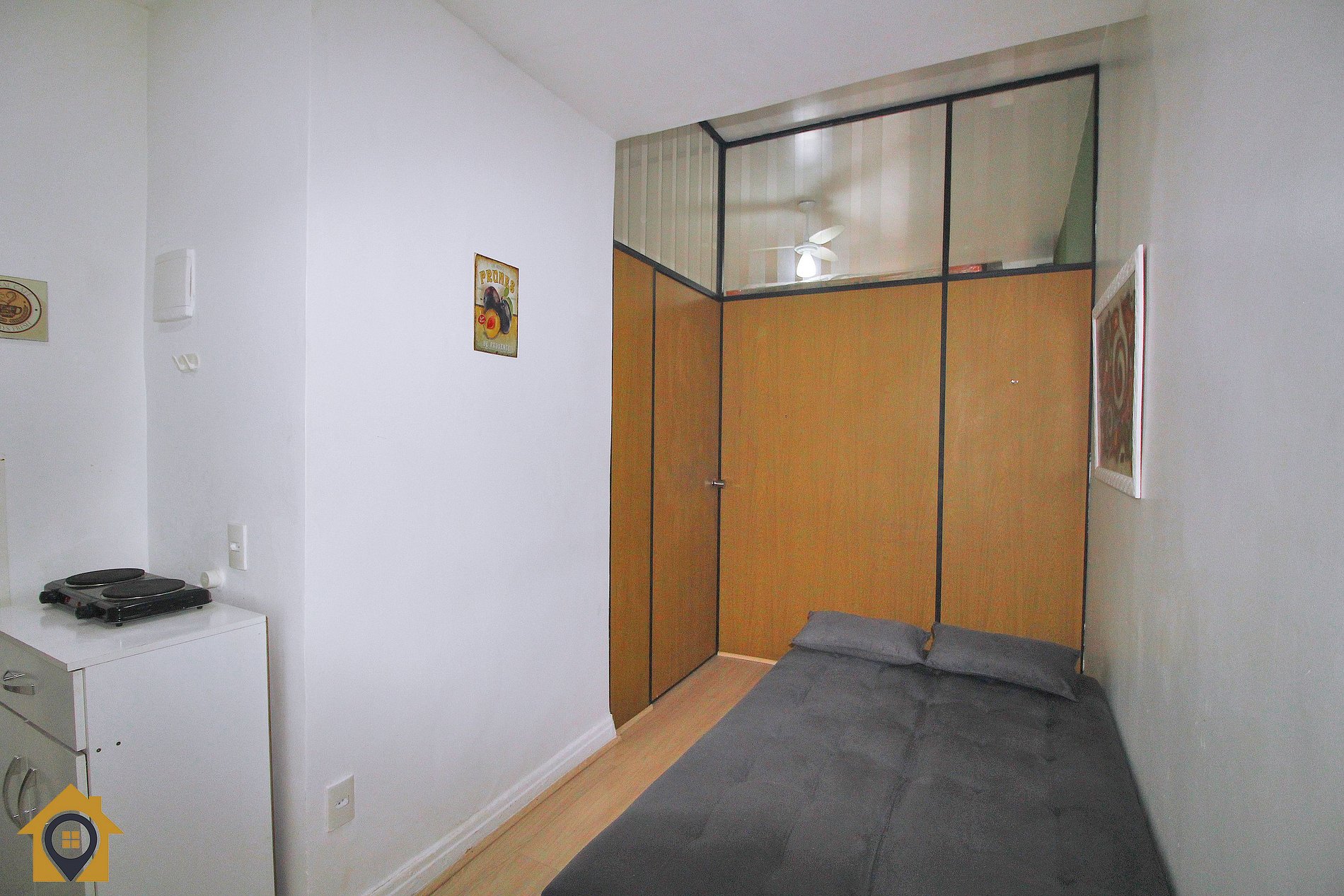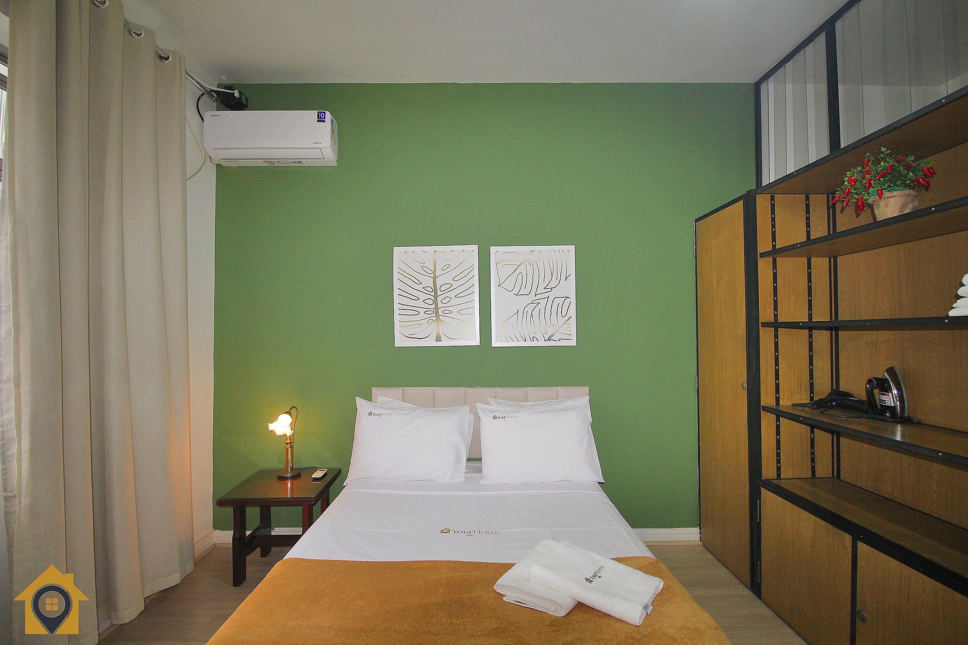 O quarto, bem decorado, conta com cama de casal, armário, mesa de cabeceira, ventilador de teto e ar condicionado para garantir o seu descanso após um dia agitado. A TV de 32 polegadas oferece entretenimento, e a janela para a rua traz a energia da cidade para dentro do seu espaço.