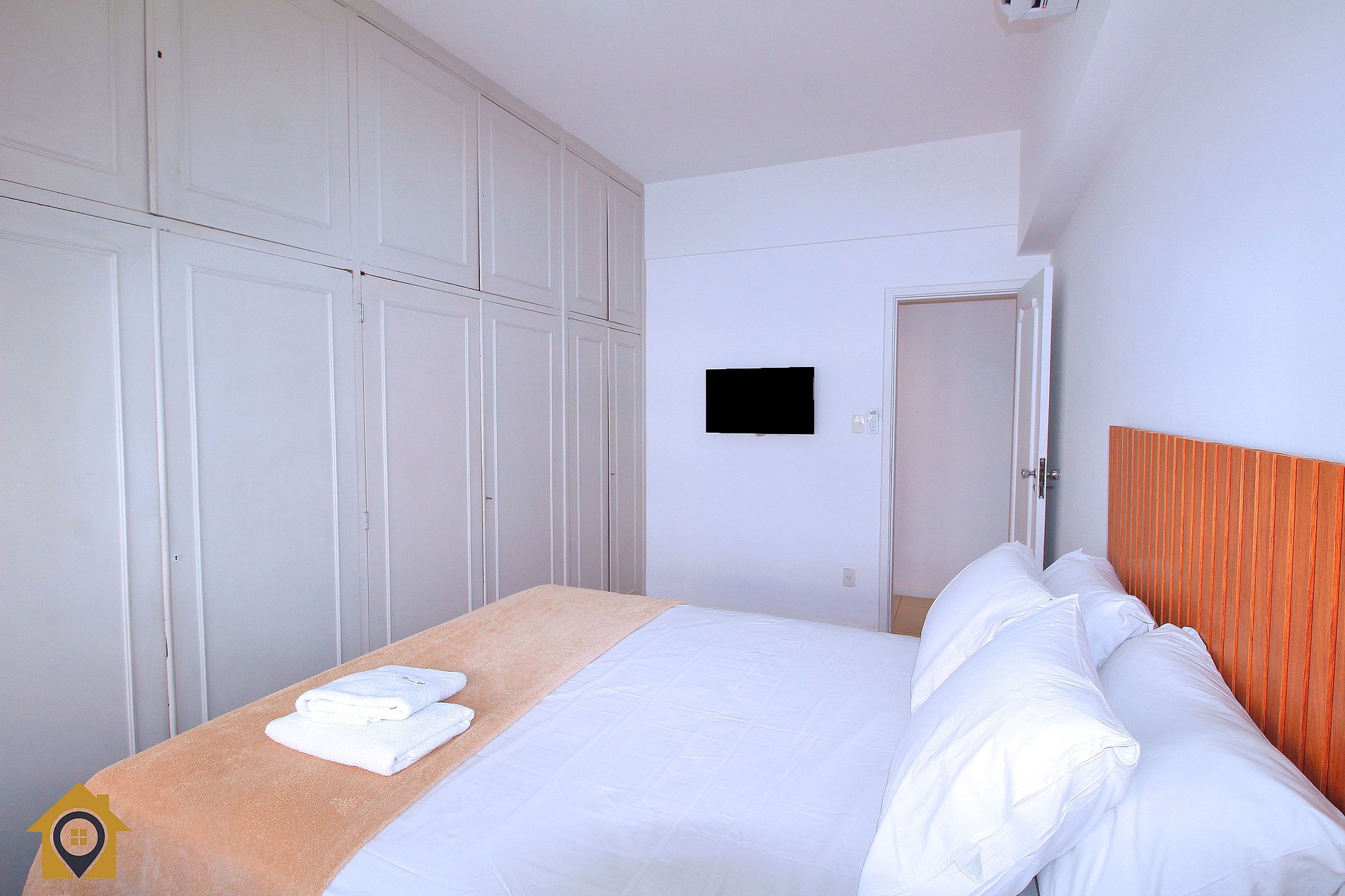 O primeiro quarto possui uma cama queen, ar-condicionado, cortina blackout, Smart TV de 32 polegadas e guarda-roupa. Já a suíte oferece cama queen, ar-condicionado, cortina blackout, Smart TV de 32 polegadas e um banheiro com água aquecida, garantindo todo o conforto que você precisa.