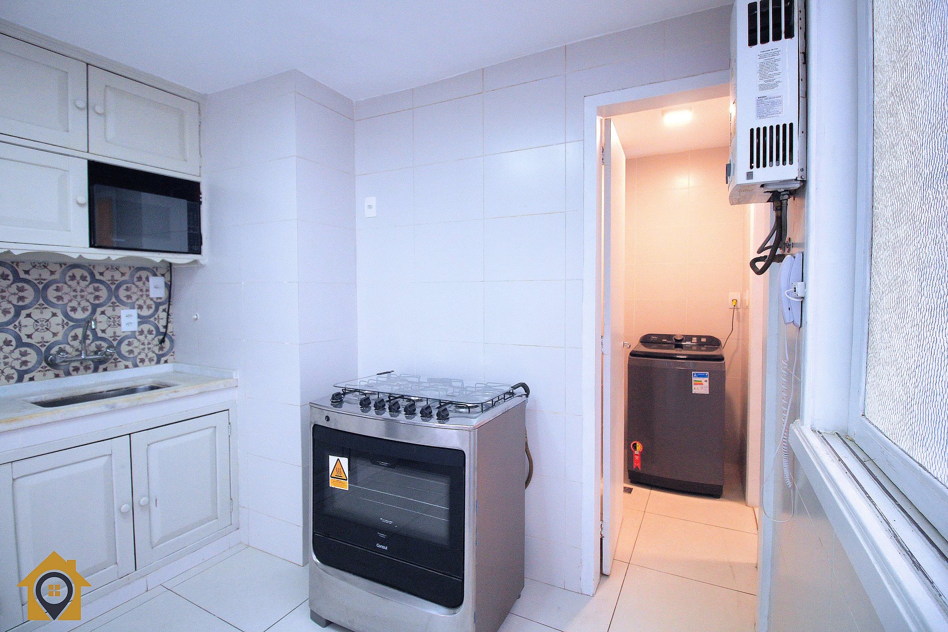 A cozinha é completa, com geladeira frost free, fogão de 5 bocas, micro-ondas e todos os utensílios necessários para preparar suas refeições. A área de serviço conta com máquina de lavar e varal de teto. Tudo foi pensado para proporcionar uma estadia prática e agradável.