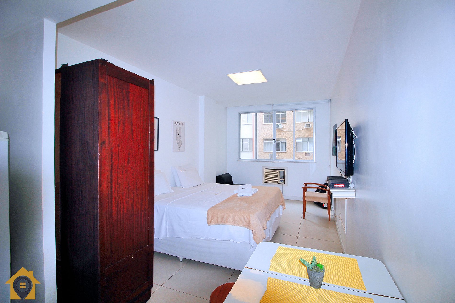Studio com cerca de 35 m², ideal para até 3 pessoas. Localizado no bairro do Leme, a poucos passos da praia, em rua com comércios ao redor (padarias, mercados, cafés, restaurantes).