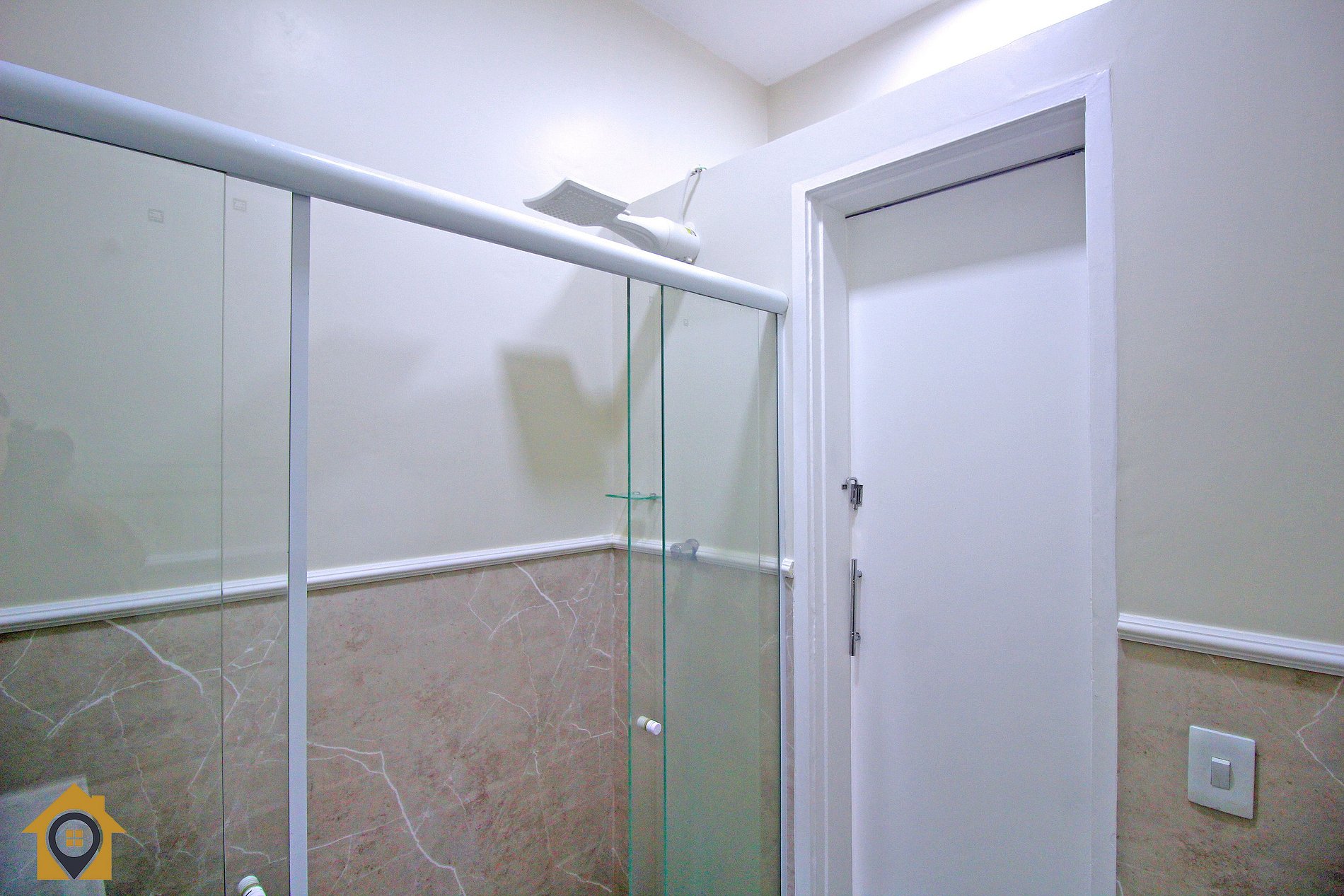 Os banheiro do apartamento é moderno e bem equipado, proporcionando comodidade e conforto aos hóspedes.