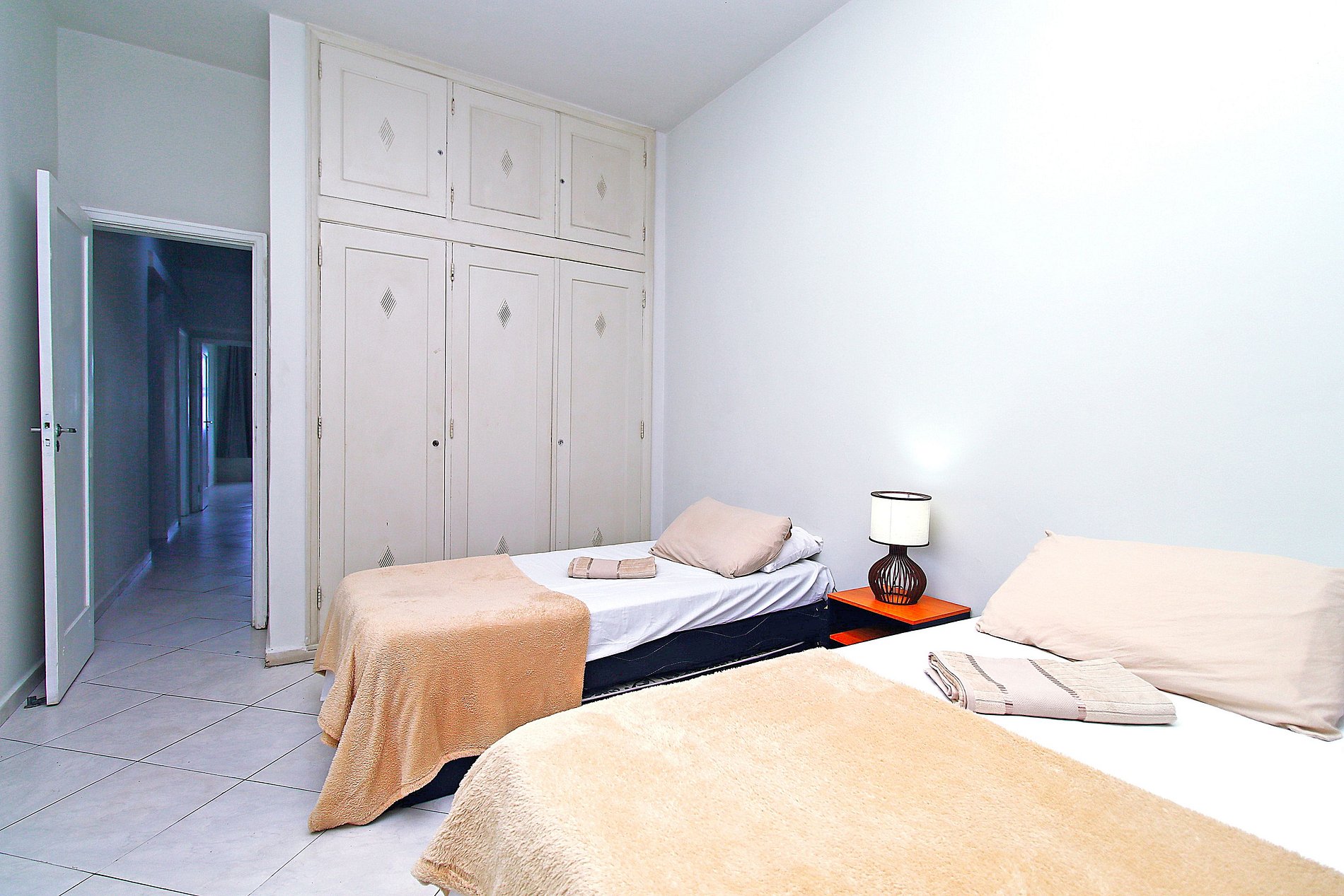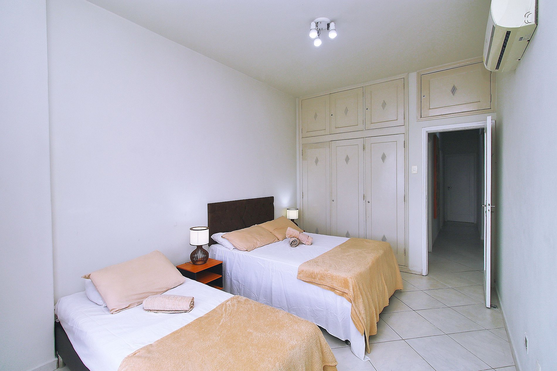 •Sala: Mesa de jantar, sofá retrátil, Smart Tv, vista para o mar •Cozinha: Geladeira, fogão 5 bocas, microondas, cafeteira, filtro de água, sanduicheria, jogo de panelas completo, etc… •Quarto 1: 1 cama de casal, ar condicionado, varanda com vista mar •Quarto 2: 1 cama de casal e 1 de solteiro, ar condicionado com vista mar •Quarto 3: 2 bicamas de solteiro, ar condicionado. •Banheiros: Box de vidro com chuveiro elétrico.