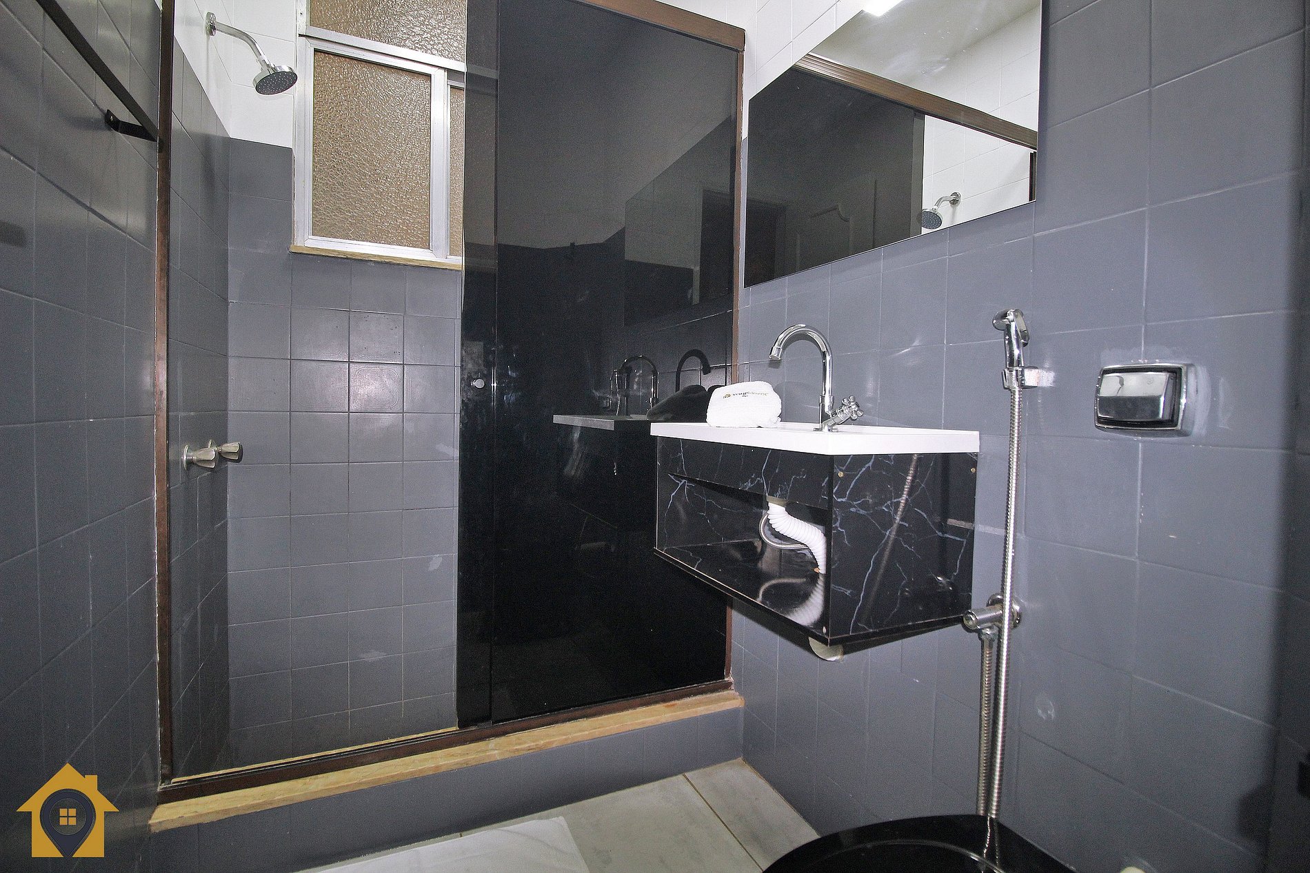 Banheiro com chuveiro a gás.