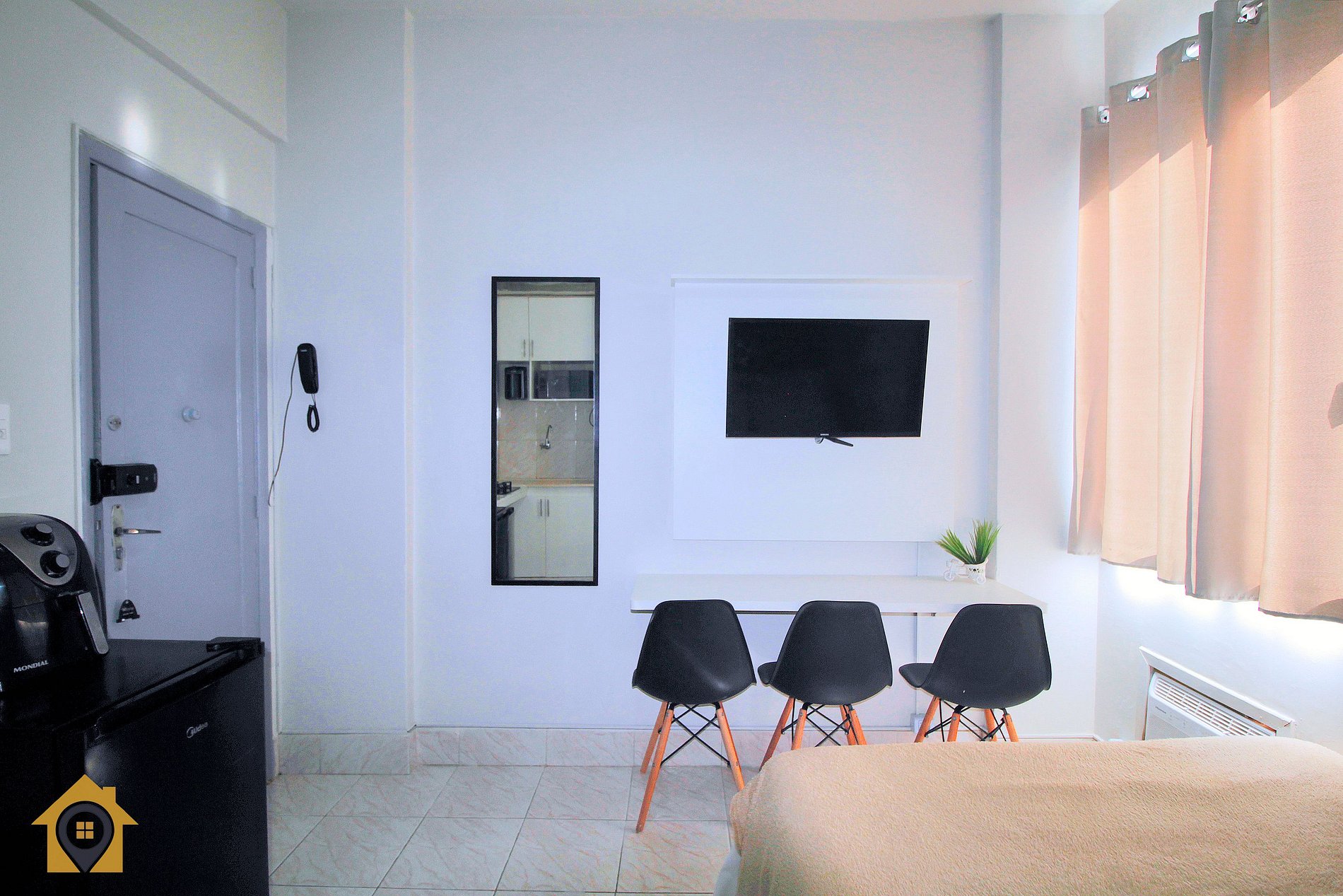 Mini studio ideal para 2 pessoas no coração de Botafogo, a poucos passos do Botafogo Praia Shopping, metrô, bares e comércios. Prédio com portaria 24h. Inclui roupa de cama e banho.