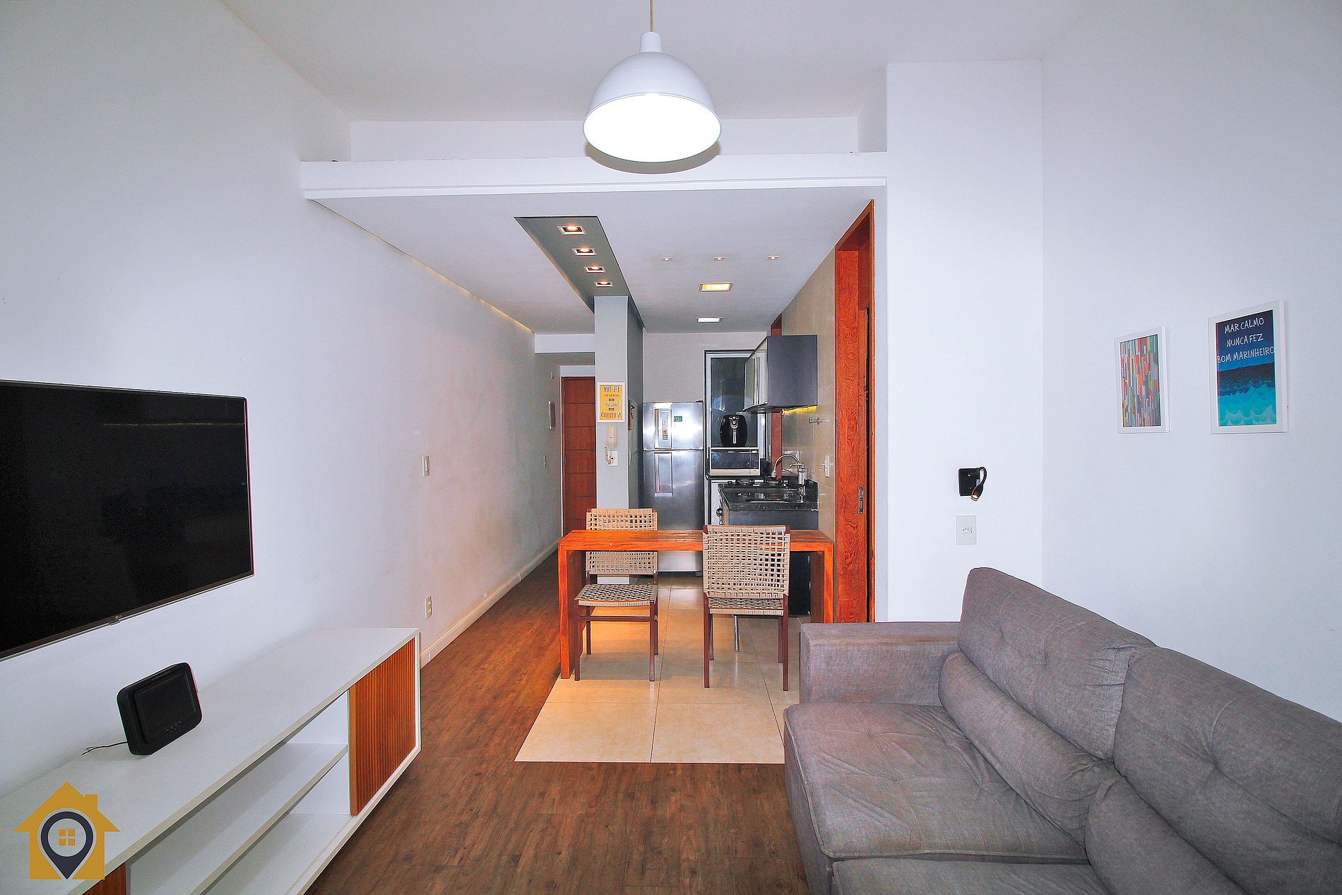 Apartamento aconchegante e funcional a poucos metros da praia. Encontra-se no quarto andar, prédio com portaria 24 horas. Dividido em sala confortável, quarto de casal , quarto de solteiro, cozinha americana e área com rede de descanso.