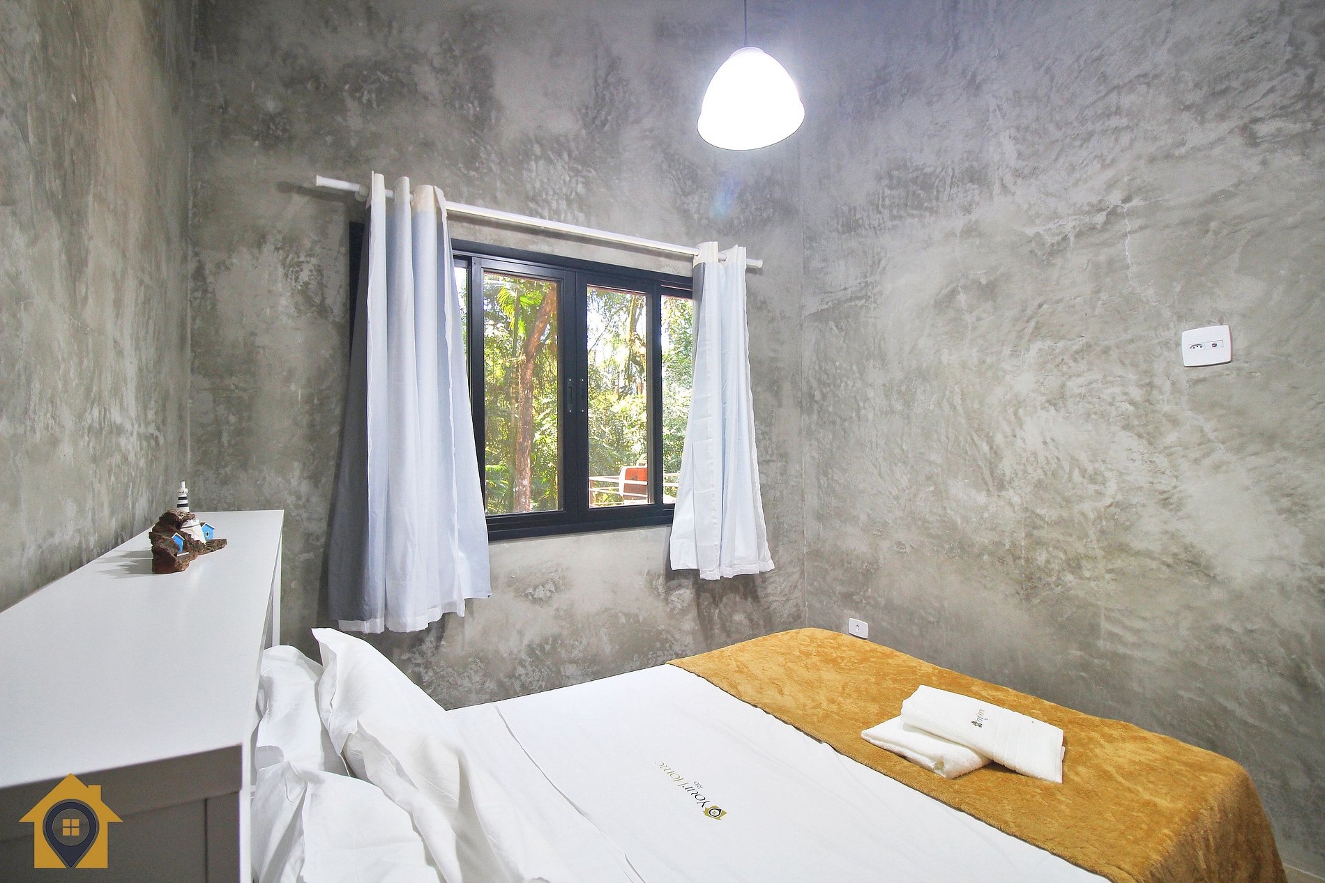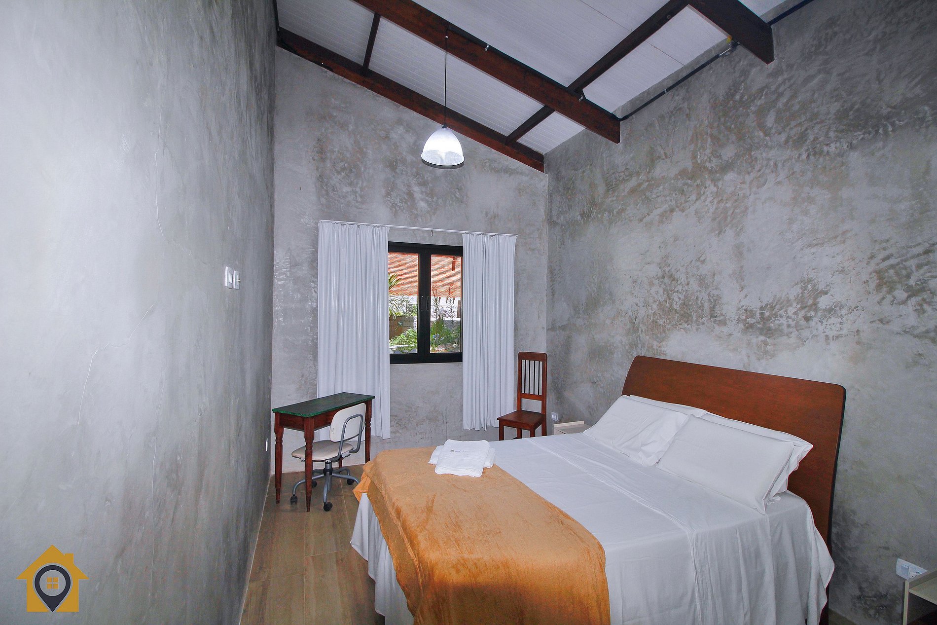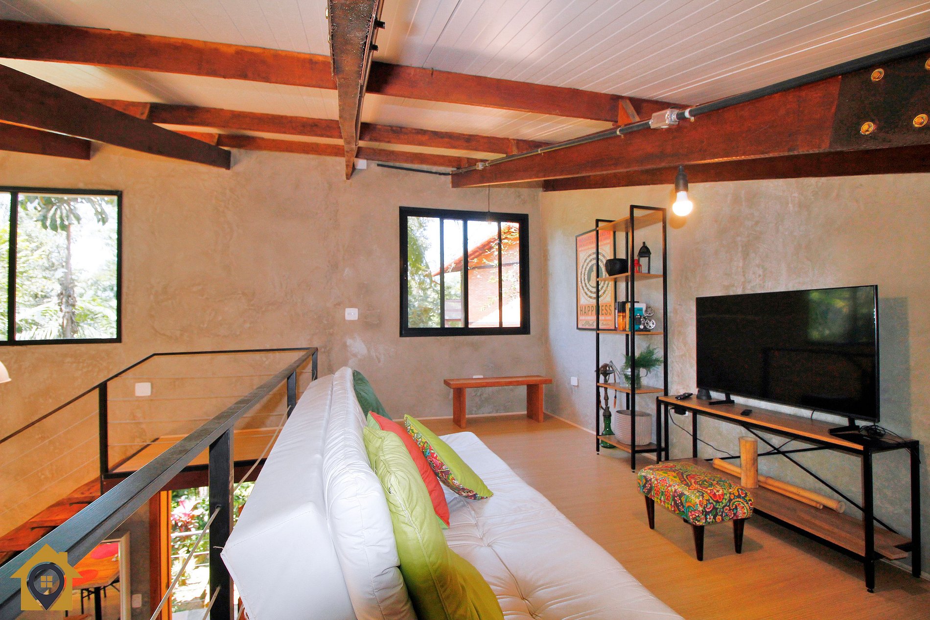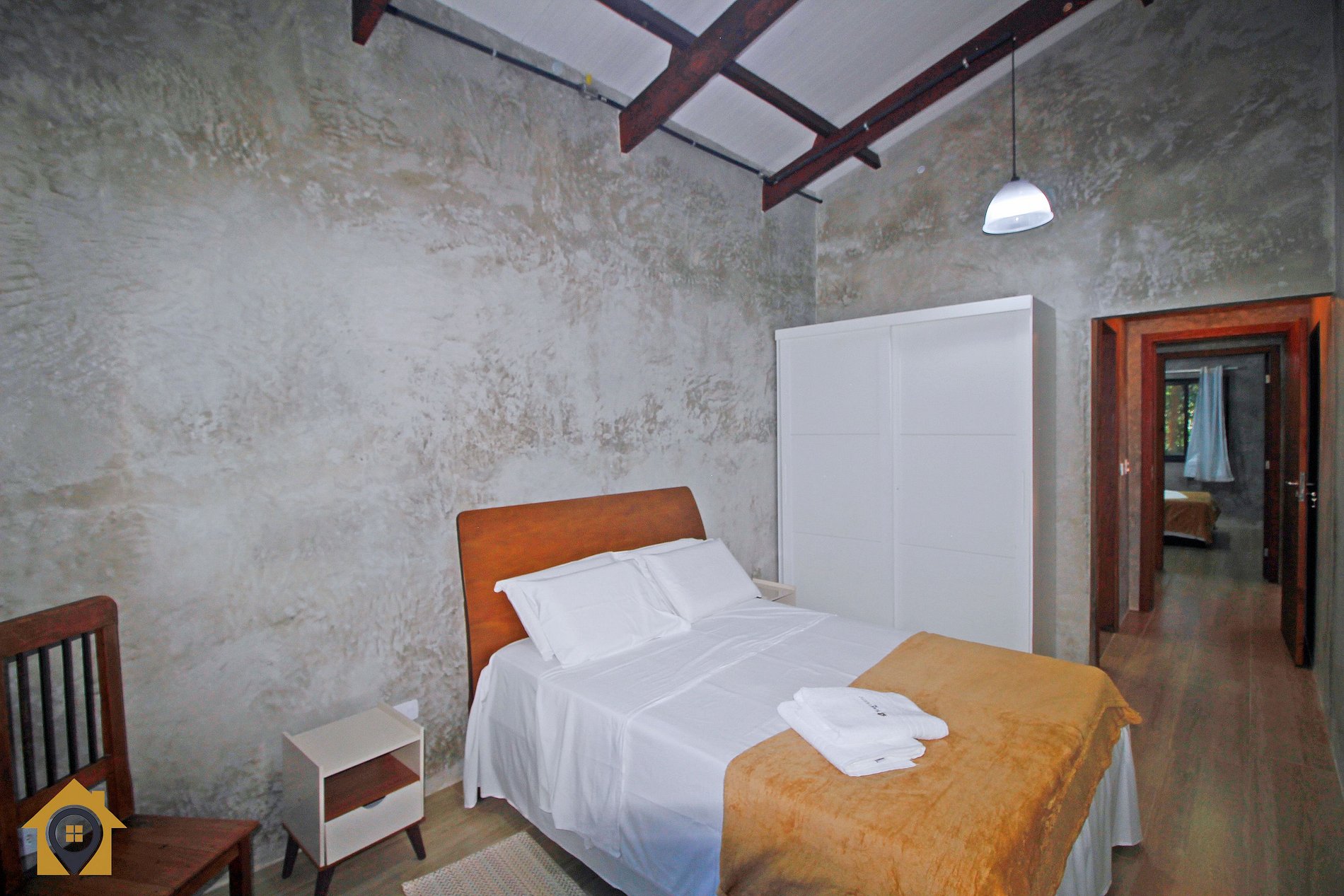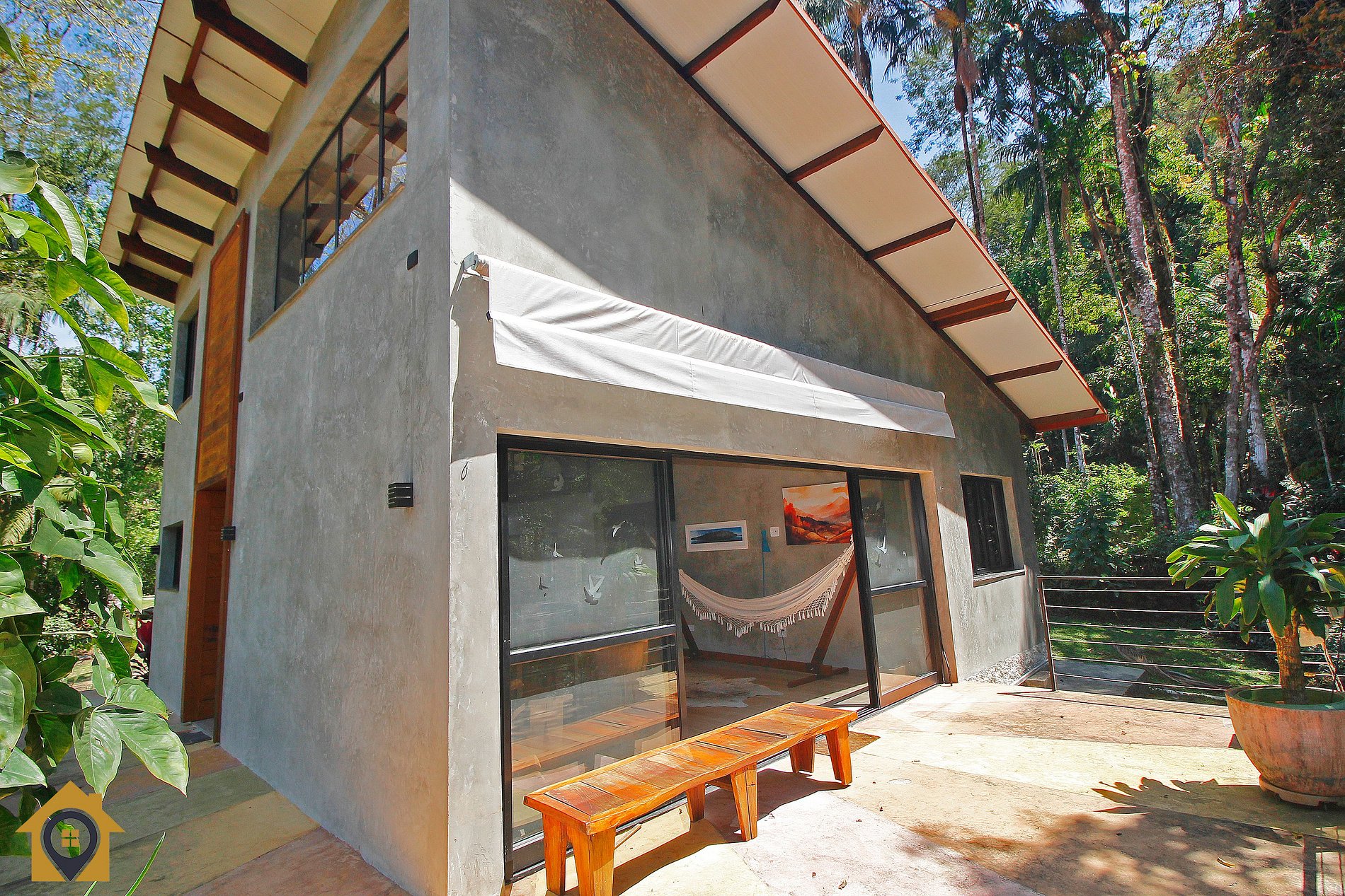Casa aconchegante e bem equipada, perfeita para quem busca descanso em meio à natureza. A sala conta com mesa de jantar para até 6 pessoas, sofá de 3 lugares e rede de descanso, integrada à cozinha completa com fogão de 5 bocas com forno, geladeira, filtro de água e utensílios para cozinhar. Os quartos possuem cama de casal, armário para roupas e cortinas blackout, garantindo conforto e privacidade. Os banheiros têm chuveiro com água quente.