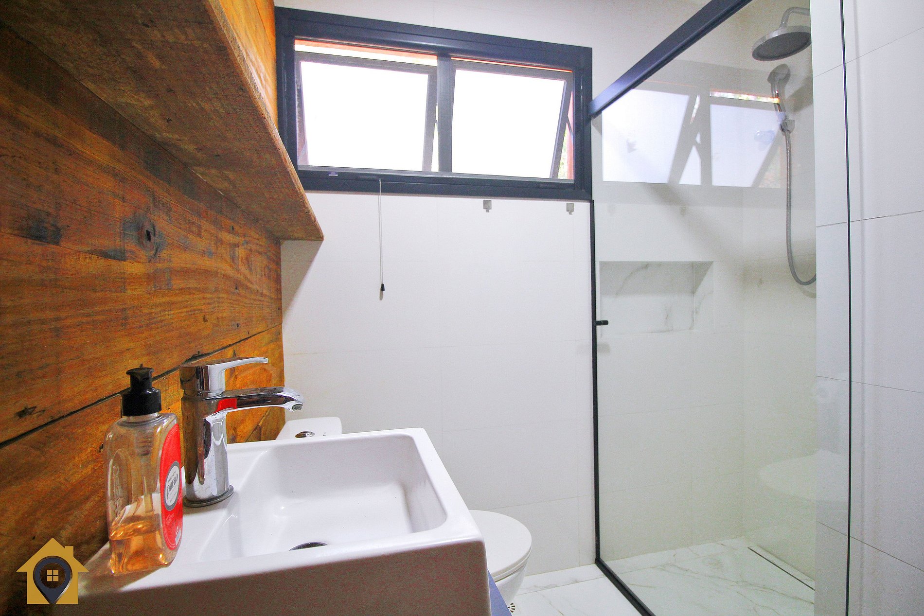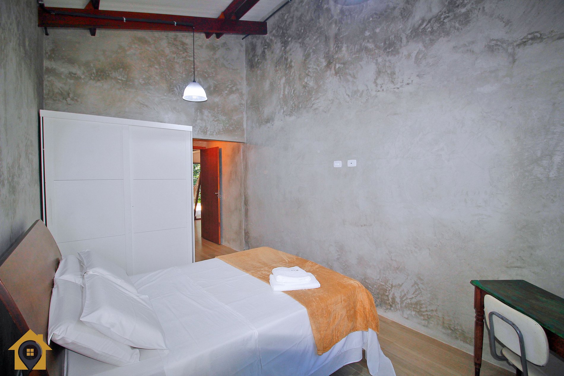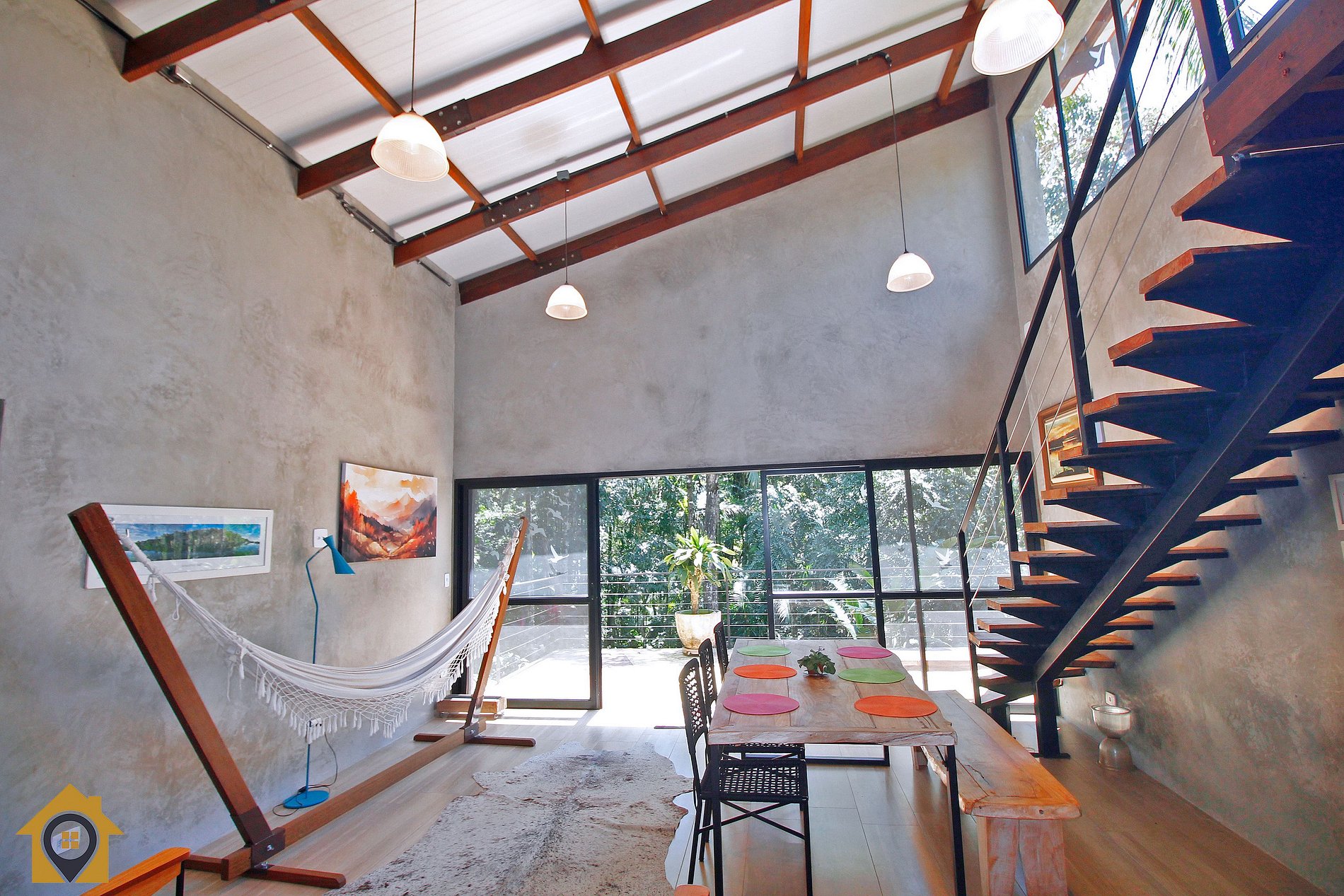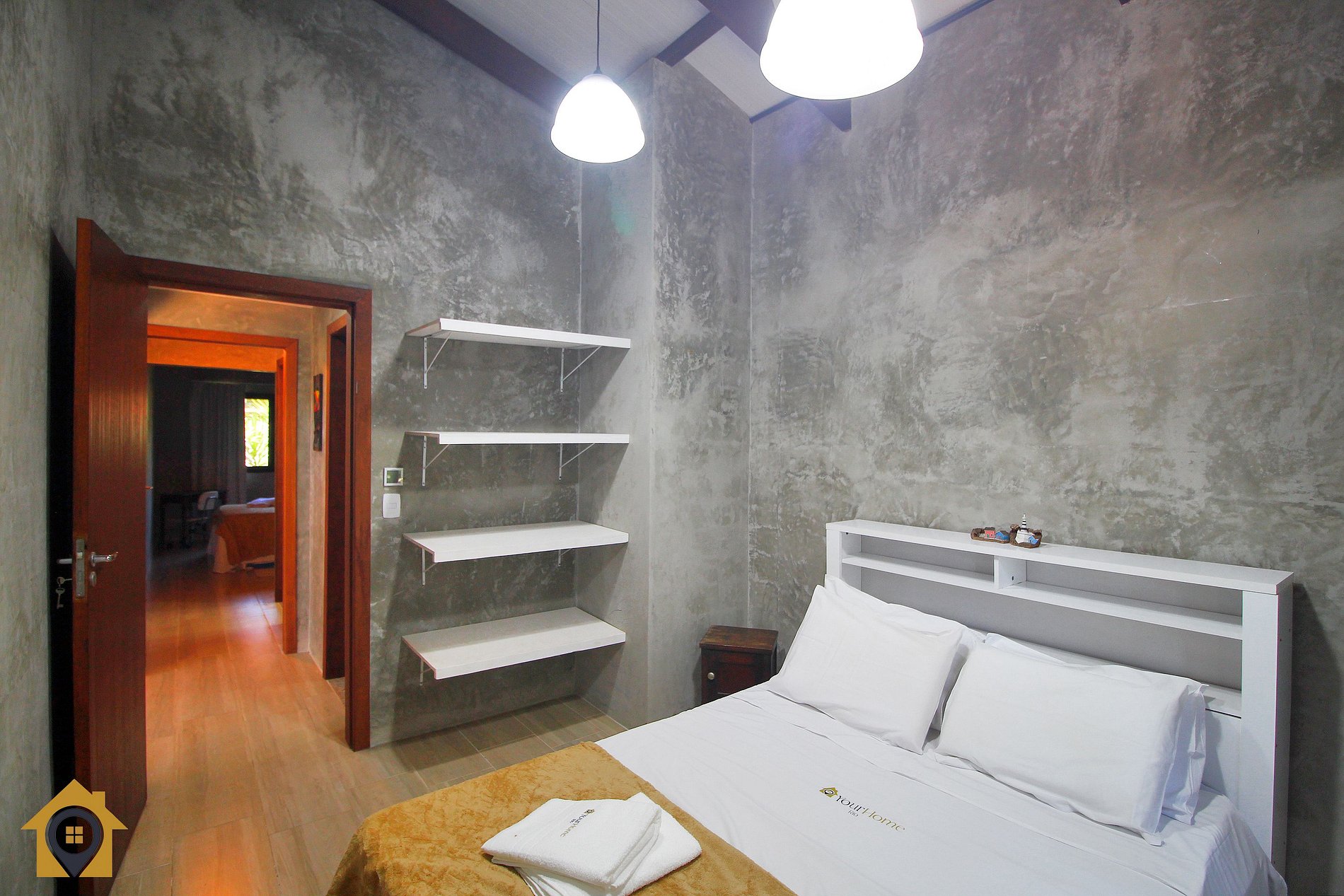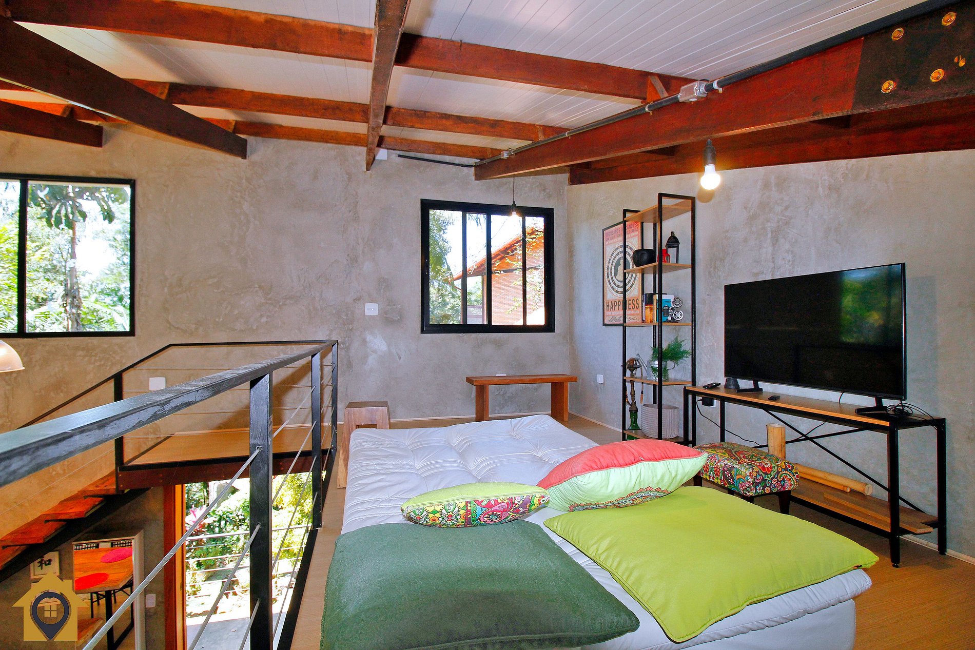 Casa aconchegante e bem equipada, perfeita para quem busca descanso em meio à natureza. A sala conta com mesa de jantar para até 6 pessoas, sofá de 3 lugares e rede de descanso, integrada à cozinha completa com fogão de 5 bocas com forno, geladeira, filtro de água e utensílios para cozinhar. Os quartos possuem cama de casal, armário para roupas e cortinas blackout, garantindo conforto e privacidade. Os banheiros têm chuveiro com água quente.