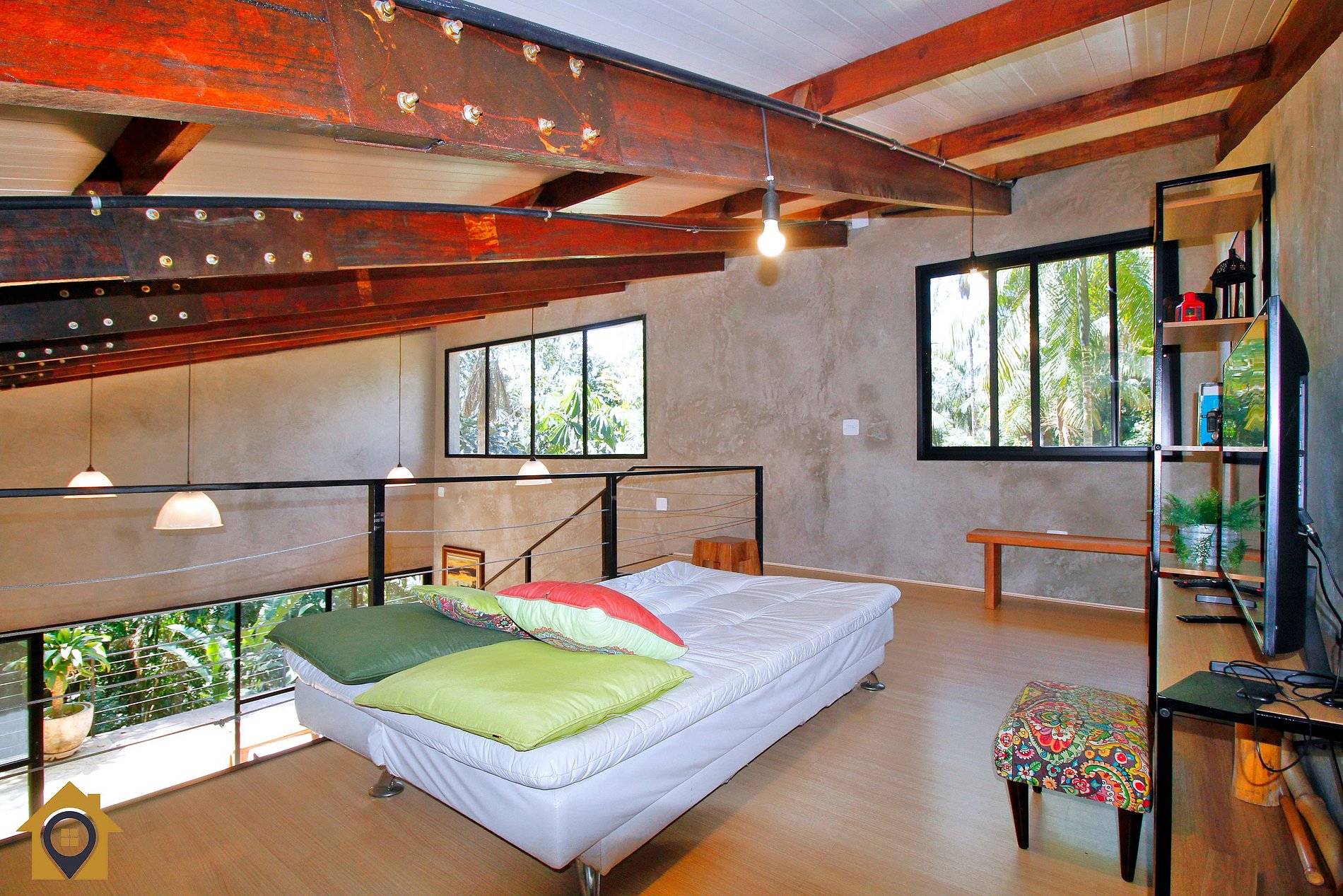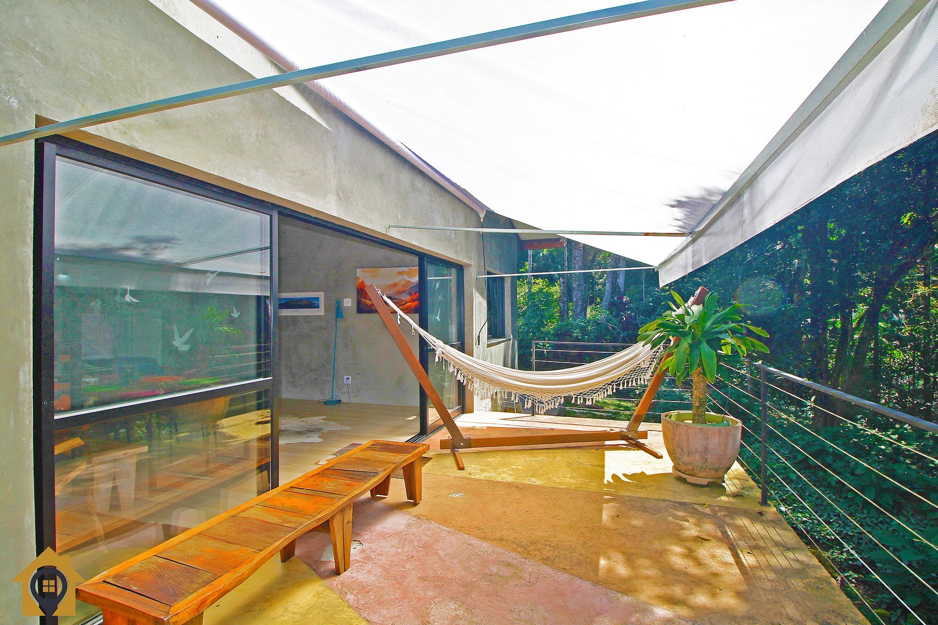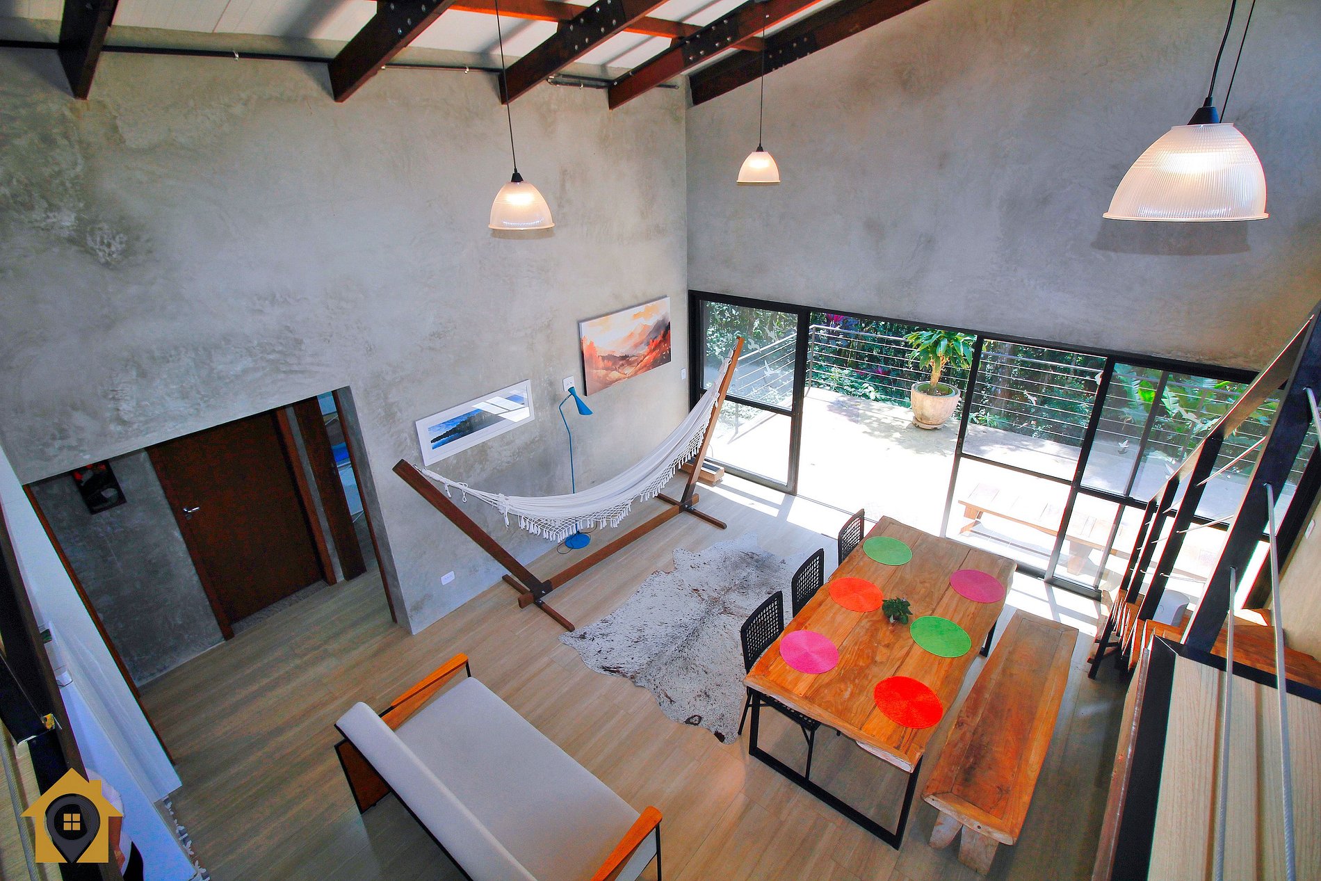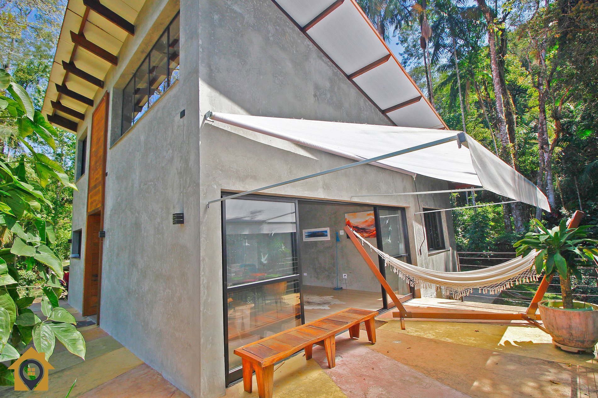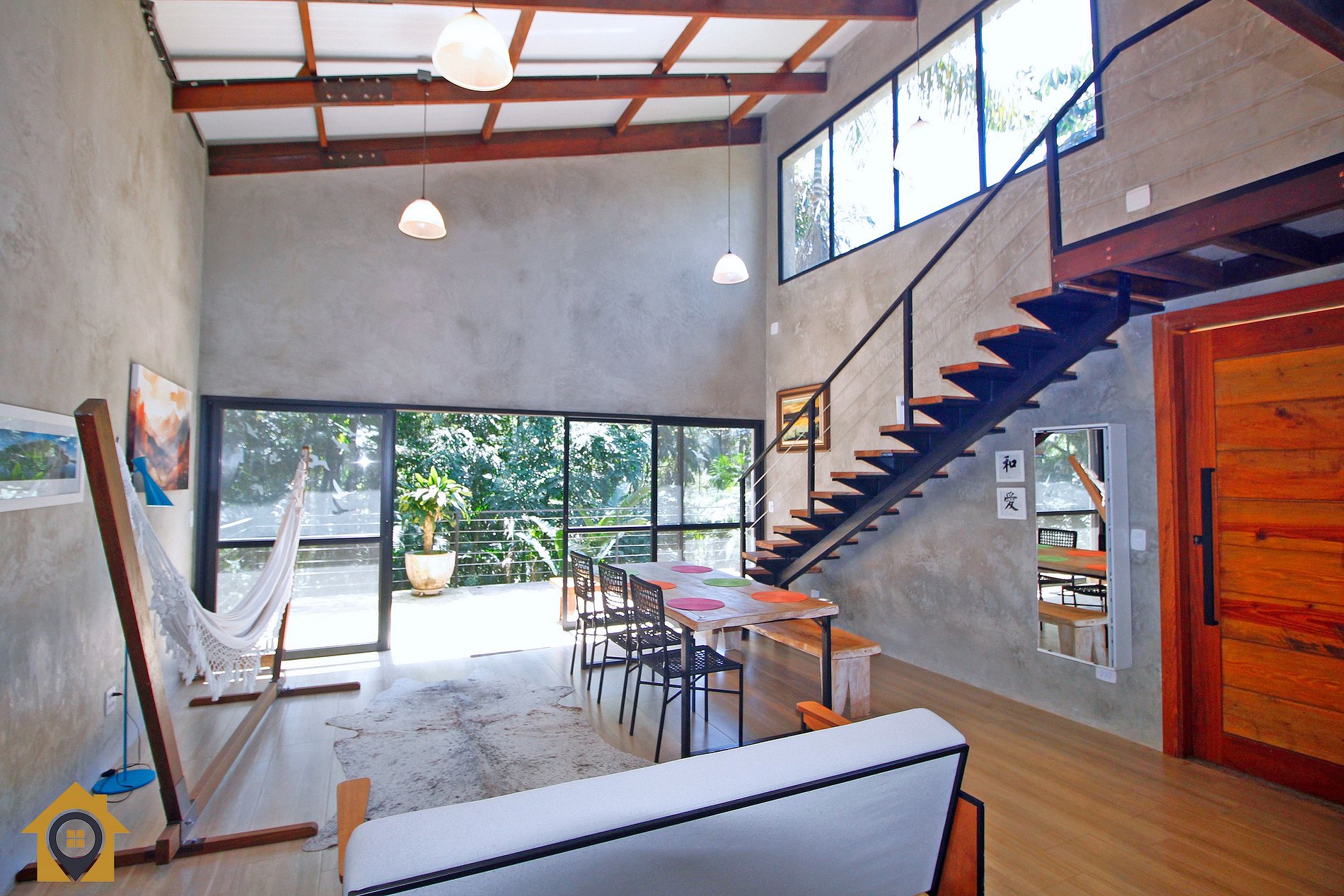 Casa aconchegante e bem equipada, perfeita para quem busca descanso em meio à natureza. A sala conta com mesa de jantar para até 6 pessoas, sofá de 3 lugares e rede de descanso, integrada à cozinha completa com fogão de 5 bocas com forno, geladeira, filtro de água e utensílios para cozinhar. Os quartos possuem cama de casal, armário para roupas e cortinas blackout, garantindo conforto e privacidade. Os banheiros têm chuveiro com água quente.