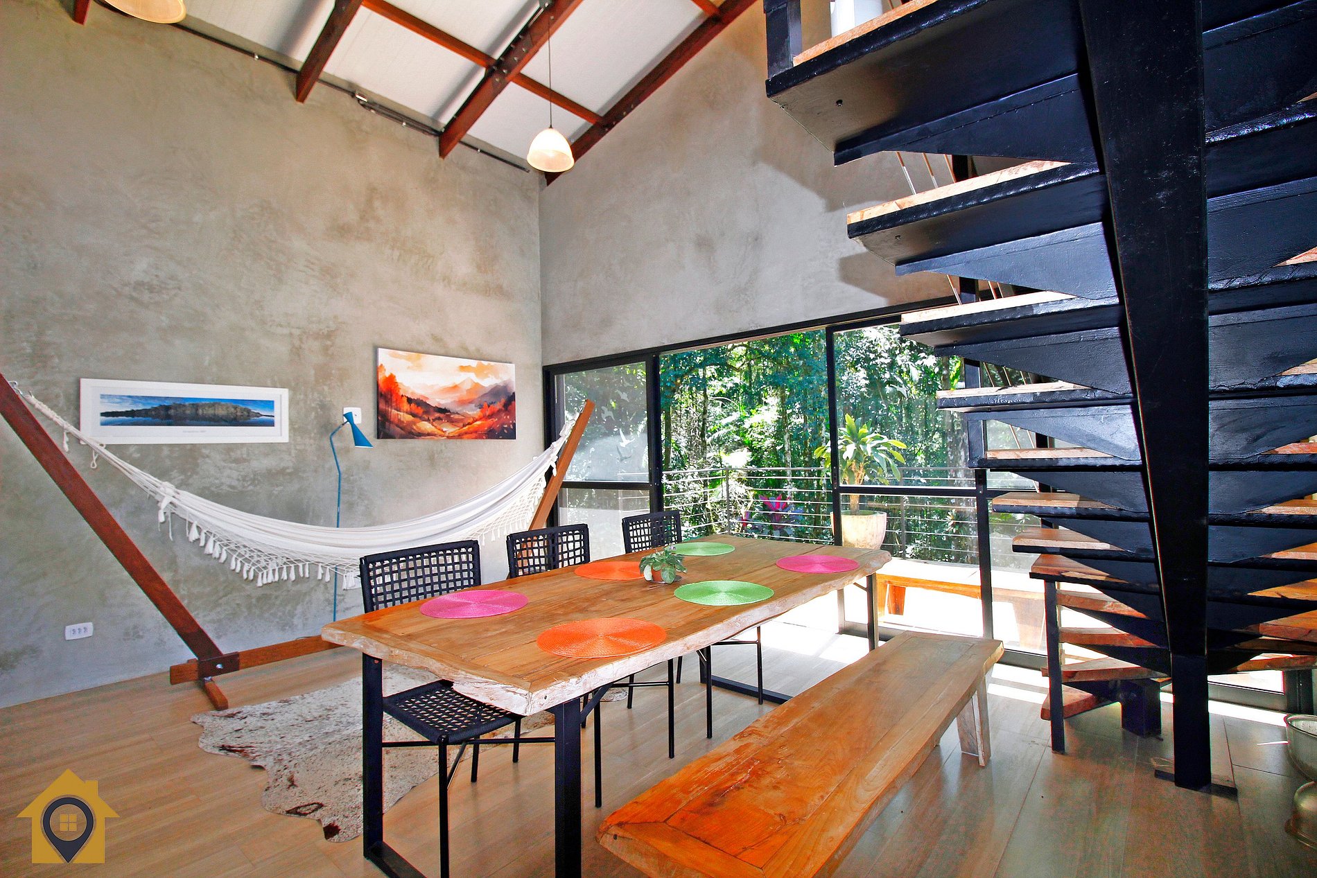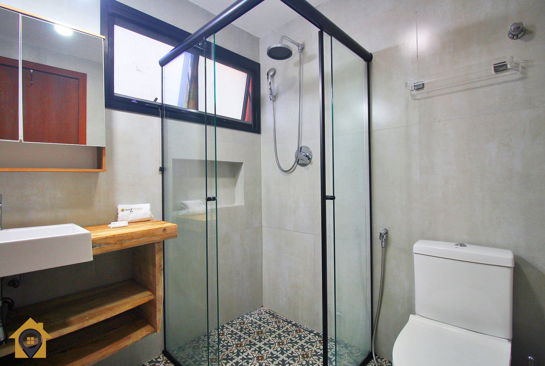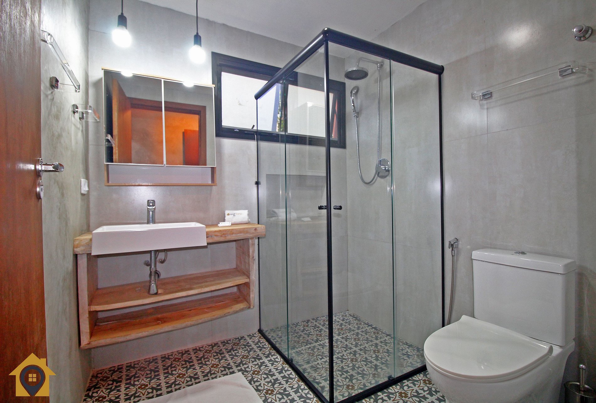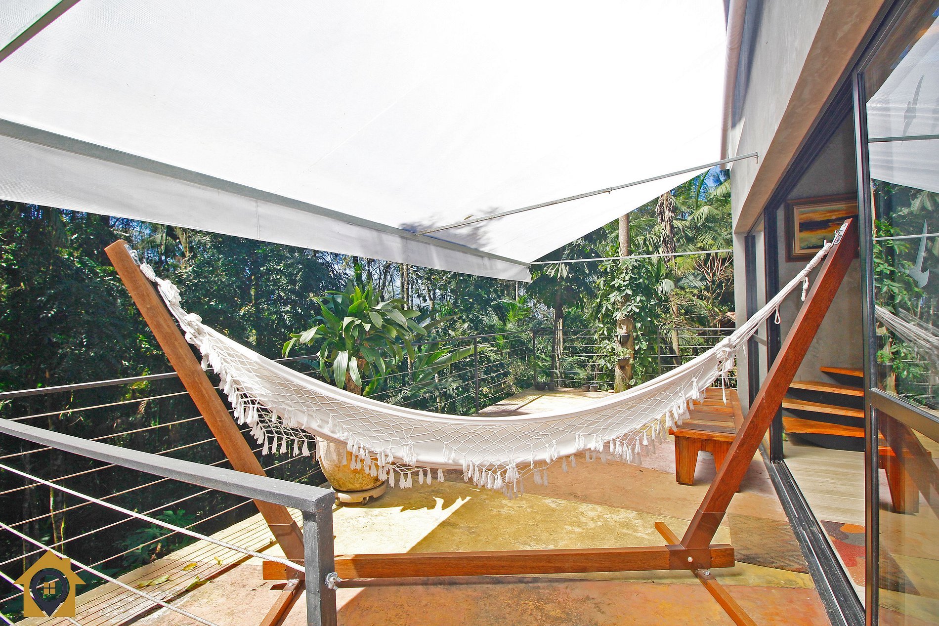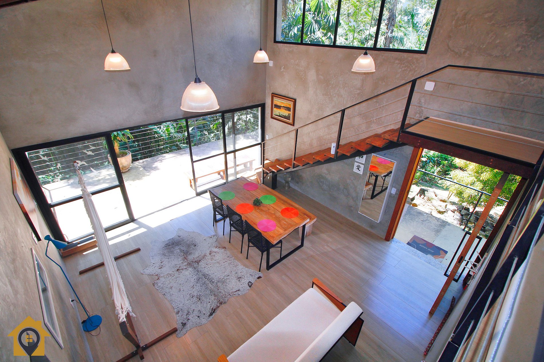 Casa aconchegante e bem equipada, perfeita para quem busca descanso em meio à natureza. A sala conta com mesa de jantar para até 6 pessoas, sofá de 3 lugares e rede de descanso, integrada à cozinha completa com fogão de 5 bocas com forno, geladeira, filtro de água e utensílios para cozinhar. Os quartos possuem cama de casal, armário para roupas e cortinas blackout, garantindo conforto e privacidade. Os banheiros têm chuveiro com água quente.