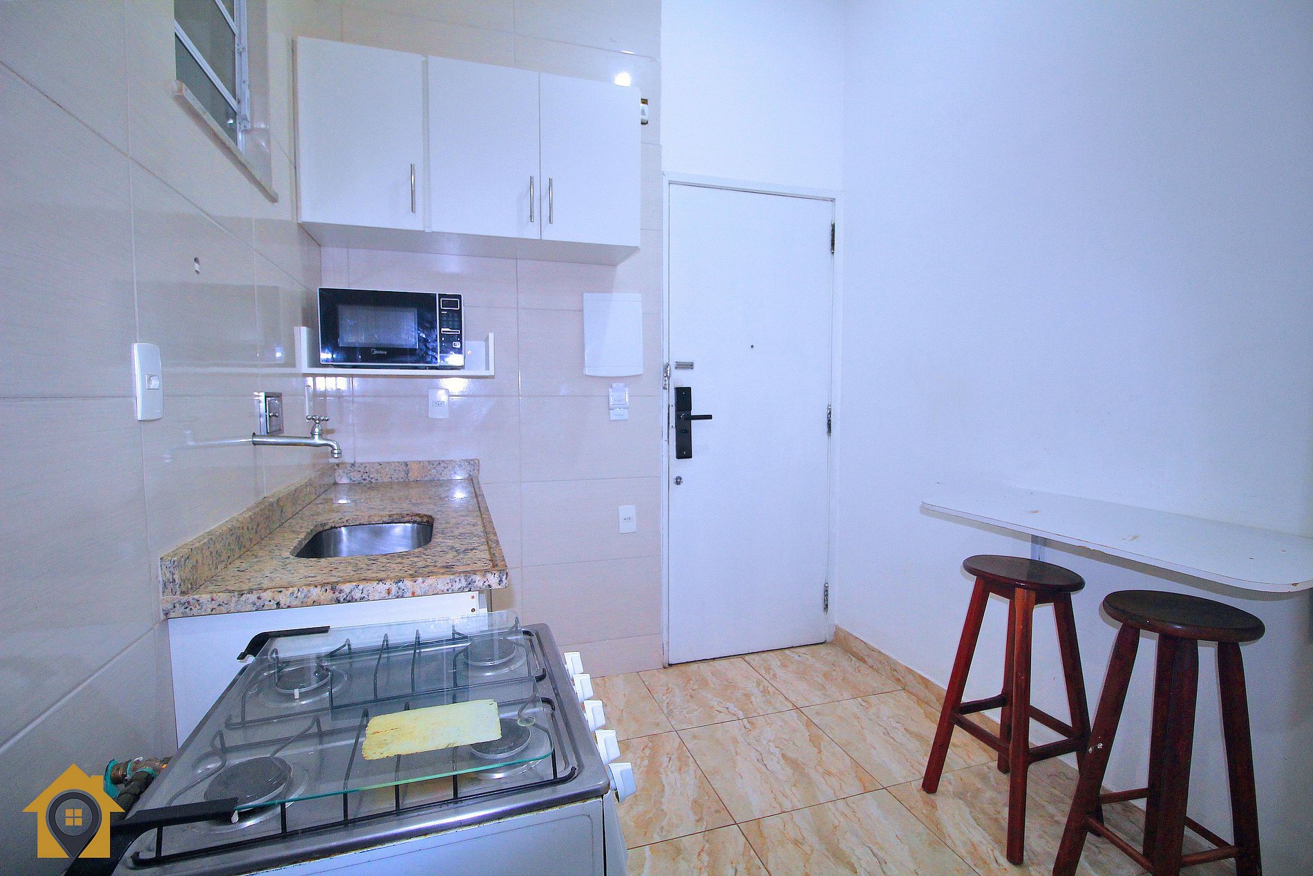 Studio econômico para 3 pessoas a uma quadra da praia de Copacabana. Próximo a mercados, farmácias, padarias e caixa eletrônico 24h No studio de 37m2, temos: •Quarto: Cama de casal Cama de solteiro Tv LCD 32’ Ar condicionado •Banheiro: Chuveiro elétrico Blindex Espelho •Cozinha: Microondas Geladeira Fogão Máquina de lavar Pratos, copos, panelas e talheres Sanduicheira e cafeteira Roupas de cama e toalhas de banho brancas