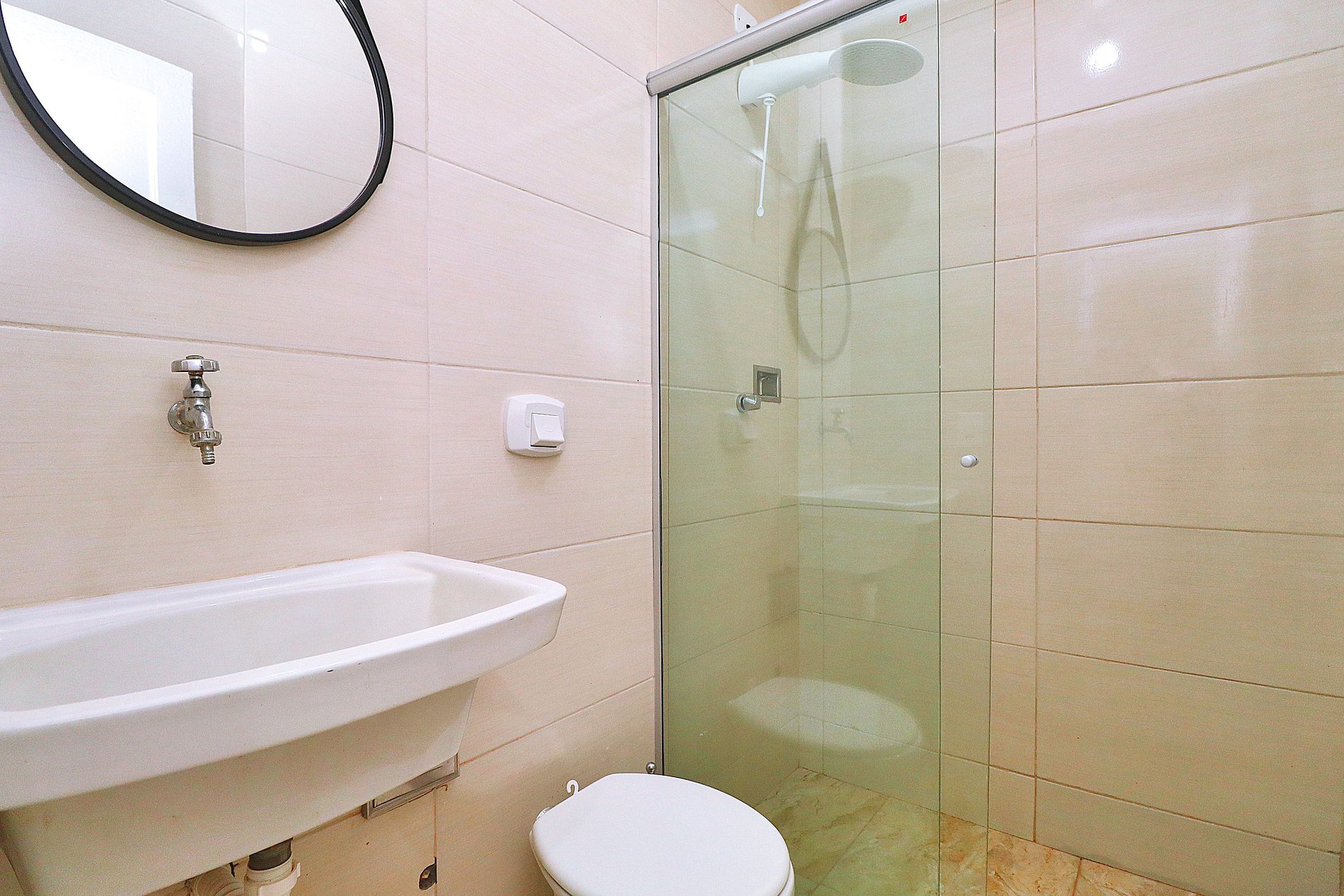 Studio econômico para 3 pessoas a uma quadra da praia de Copacabana. Próximo a mercados, farmácias, padarias e caixa eletrônico 24h No studio de 37m2, temos: •Quarto: Cama de casal Cama de solteiro Tv LCD 43’ Ar condicionado •Banheiro: Chuveiro elétrico Blindex Espelho •Cozinha: Microondas Geladeira Fogão Máquina de lavar Pratos, copos, panelas e talheres Sanduicheira e cafeteira Roupas de cama e toalhas de banho brancas