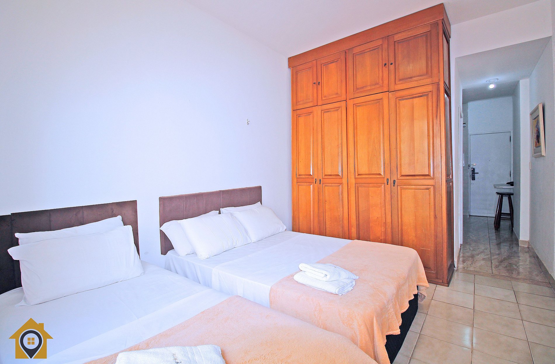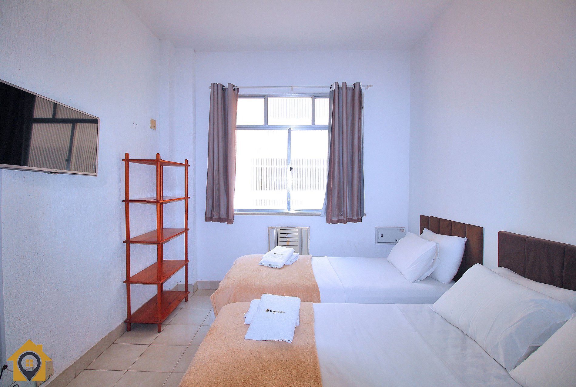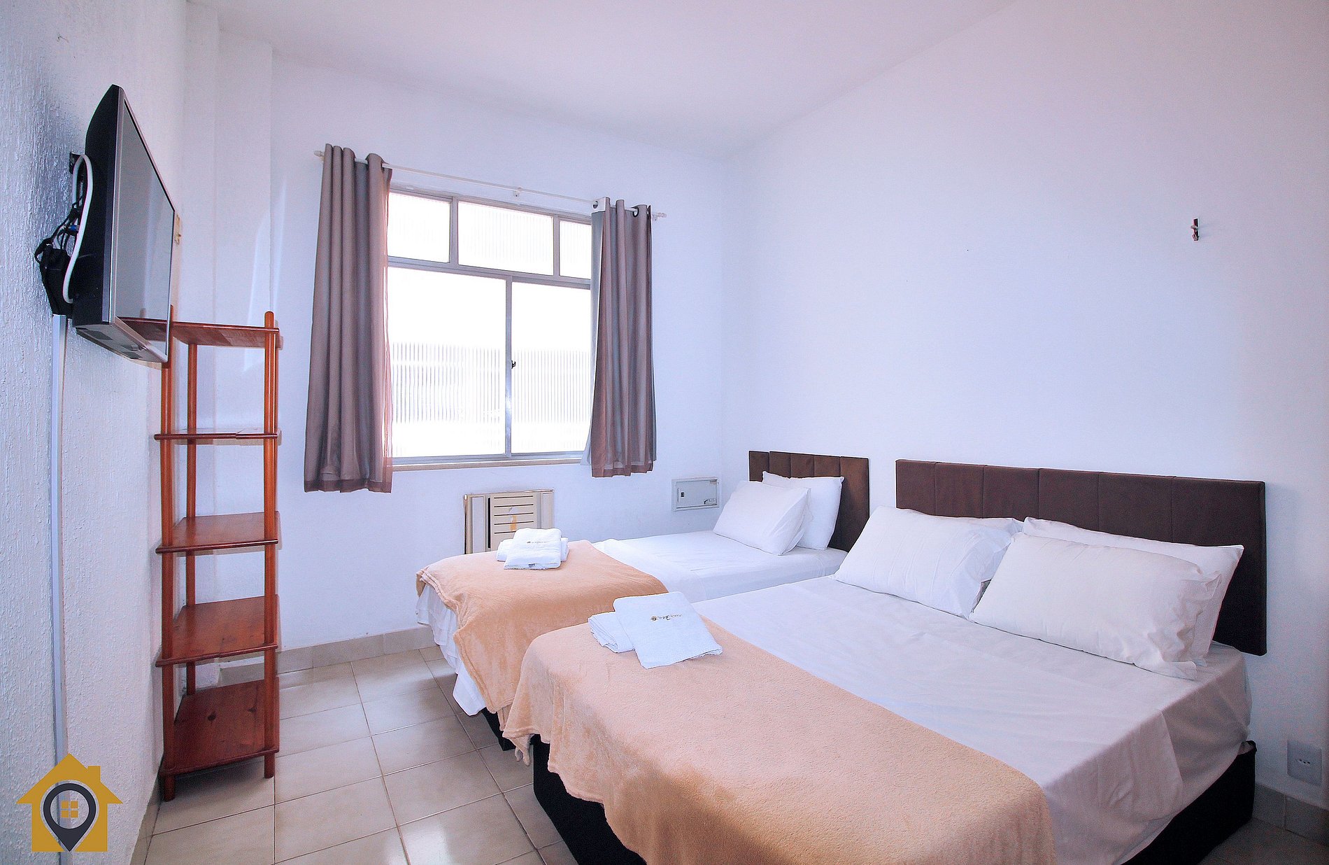Studio econômico para 3 pessoas a uma quadra da praia de Copacabana. Próximo a mercados, farmácias, padarias e caixa eletrônico 24h No studio de 37m2, temos: •Quarto: Cama de casal Cama de solteiro Tv LCD 32’ Ar condicionado •Banheiro: Chuveiro elétrico Blindex Espelho •Cozinha: Microondas Geladeira Fogão Máquina de lavar Pratos, copos, panelas e talheres Sanduicheira e cafeteira Roupas de cama e toalhas de banho brancas