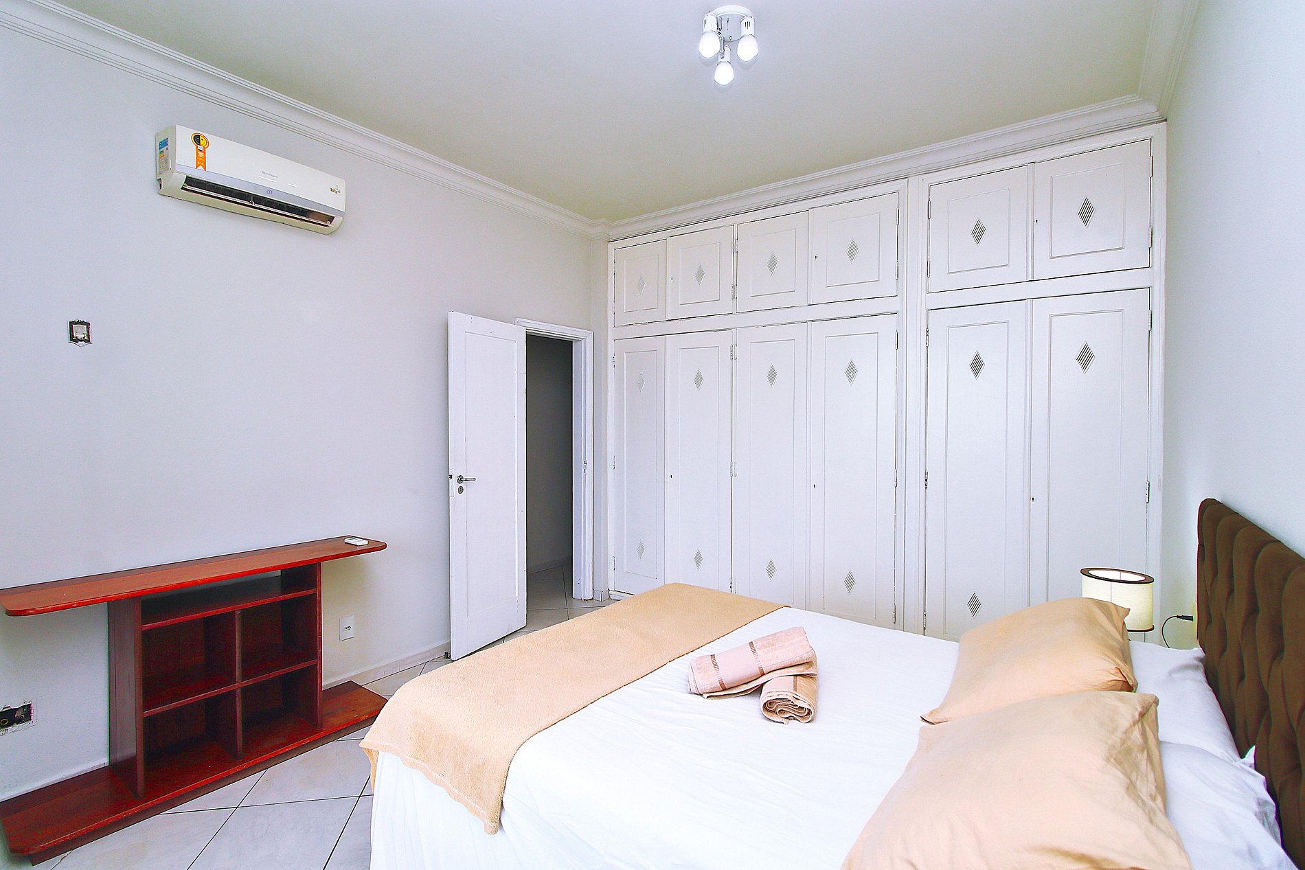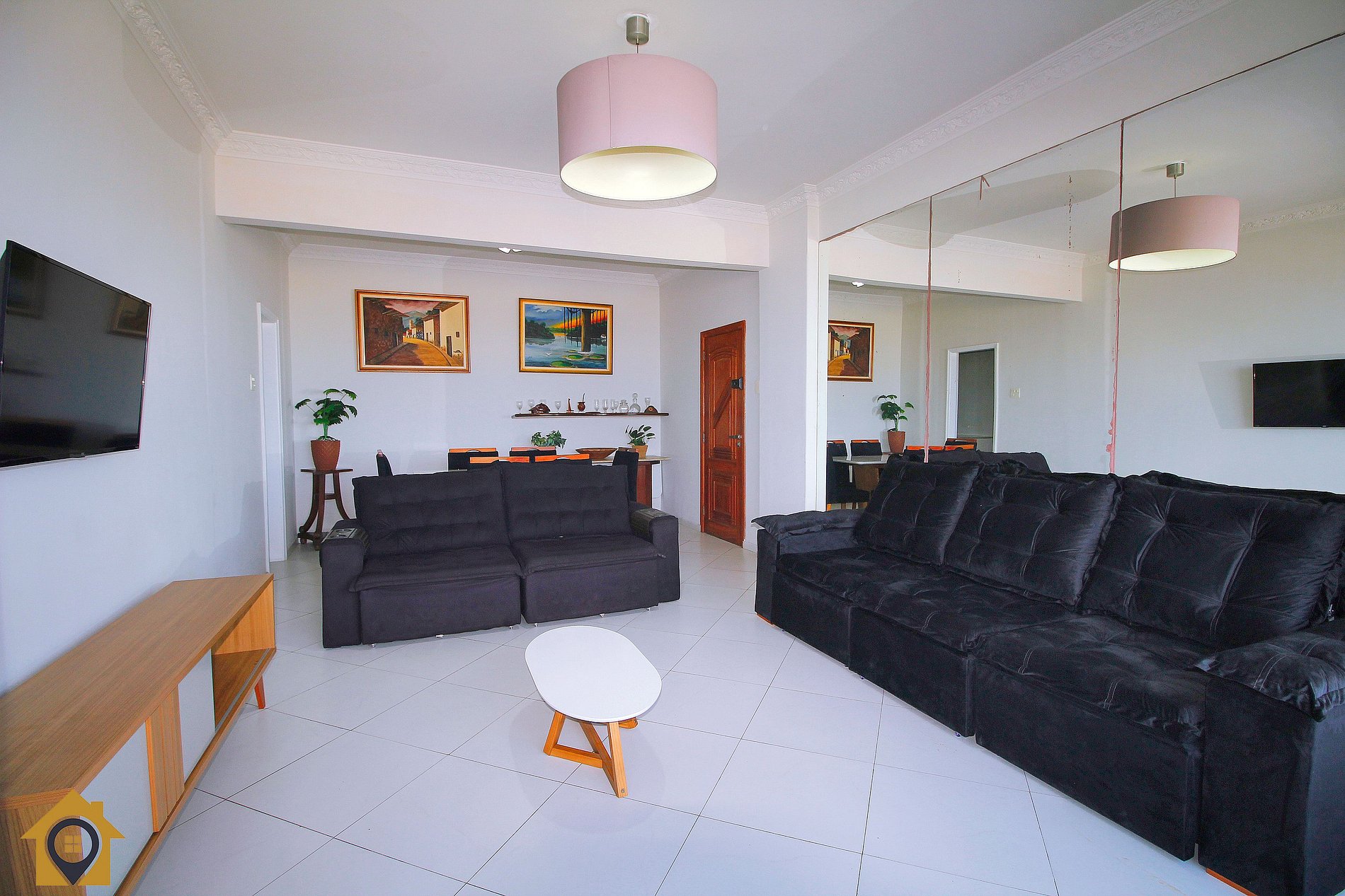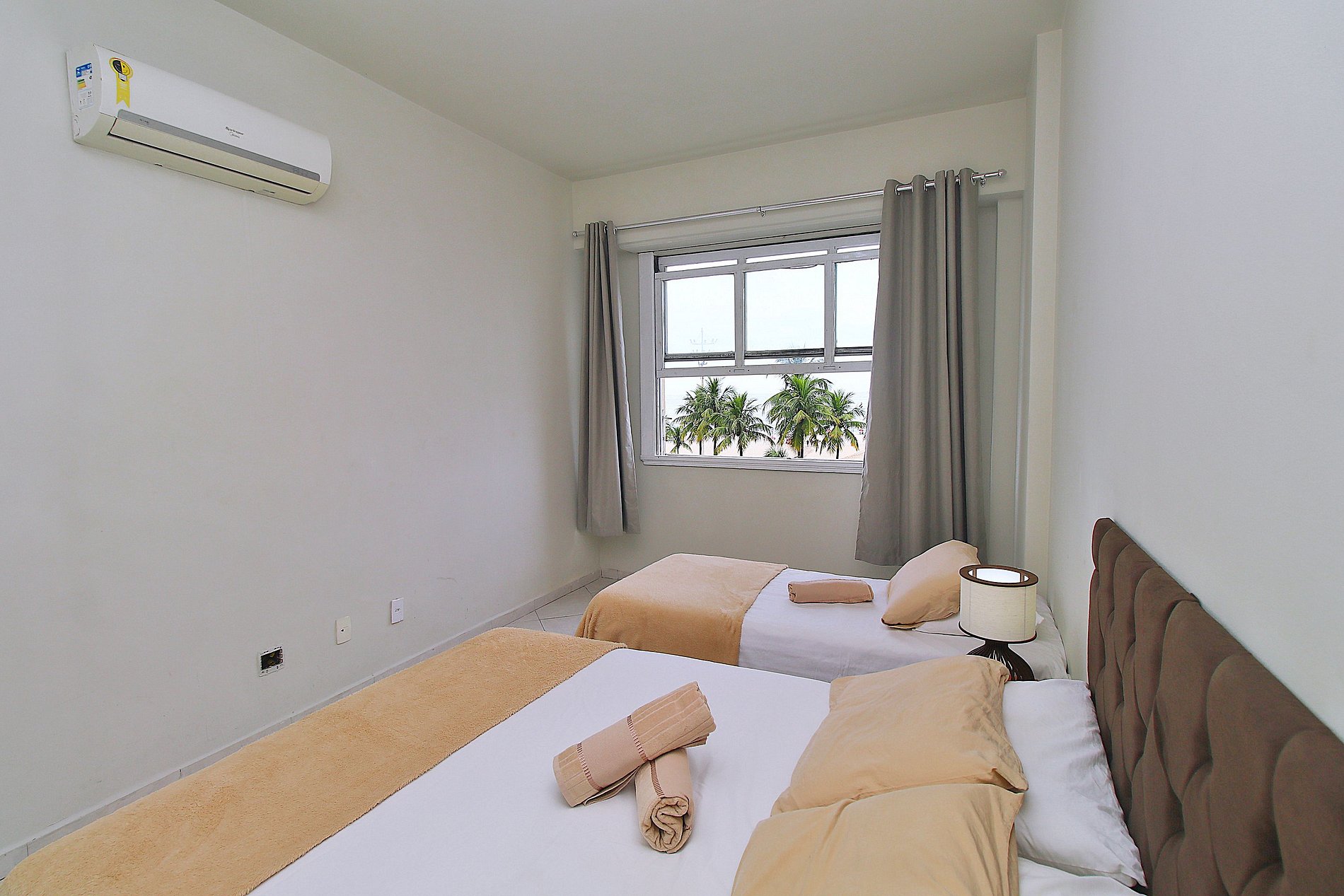 •Sala: Mesa de jantar, sofá retrátil, Smart Tv, vista para o mar •Cozinha: Geladeira, fogão 5 bocas, microondas, cafeteira, filtro de água, sanduicheria, jogo de panelas completo, etc… •Quarto 1: 1 cama de casal, ar condicionado, varanda com vista mar •Quarto 2: 1 cama de casal e 1 de solteiro, ar condicionado com vista mar •Quarto 3: 2 bicamas de solteiro, ar condicionado. •Banheiros: Box de vidro com chuveiro elétrico.