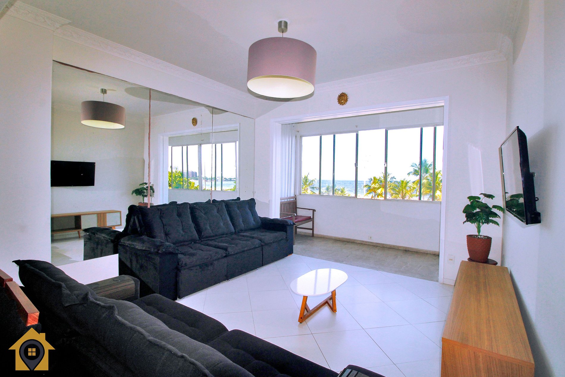 •Sala: Mesa de jantar, sofá retrátil, Smart Tv, vista para o mar •Cozinha: Geladeira, fogão 5 bocas, microondas, cafeteira, filtro de água, sanduicheria, jogo de panelas completo, etc… •Quarto 1: 1 cama de casal e 1 de solteiro, ar condicionado, varanda com vista mar •Quarto 2: 1 cama de casal e 1 de solteiro, ar condicionado com vista mar •Quarto 3: 1 cama de casal e 1 de solteiro, ar condicionado. •Banheiros: Box de vidro com chuveiro elétrico.