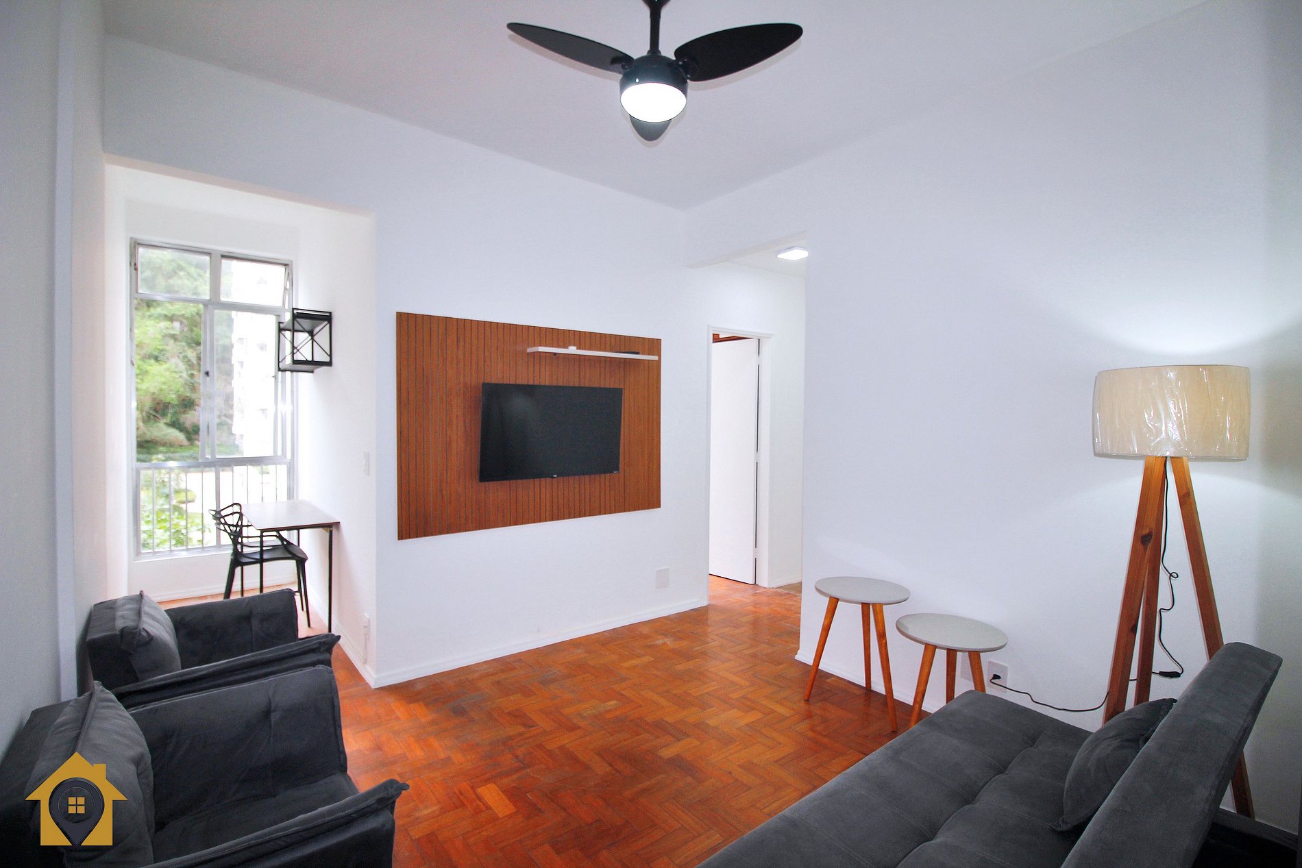 Apartamento confortável no Leme, ideal para até 4 pessoas, dividido em quarto, sala, sala de jantar, cozinha e banheiro. Localizado em uma rua tranquila, em prédio reformado com portaria 24 horas, fica a cerca de 300 metros da praia. Oferecemos roupa de cama e banho para garantir uma estadia prática e agradável. Vaga de garagem para 1 carro (nao cabe caminhonetes)