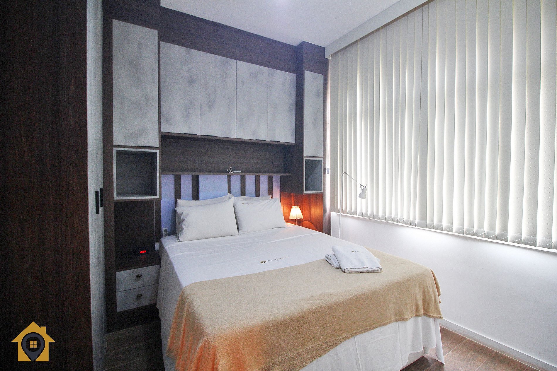 Este apartamento oferece conforto e praticidade para até 3 pessoas, com ambientes bem distribuídos e ótima estrutura. No quarto principal, você encontra uma cama de casal, mesa de trabalho/estudo com cadeira, ar-condicionado, ventilador de teto, espelho e janela voltada para a rua, garantindo boa iluminação natural.