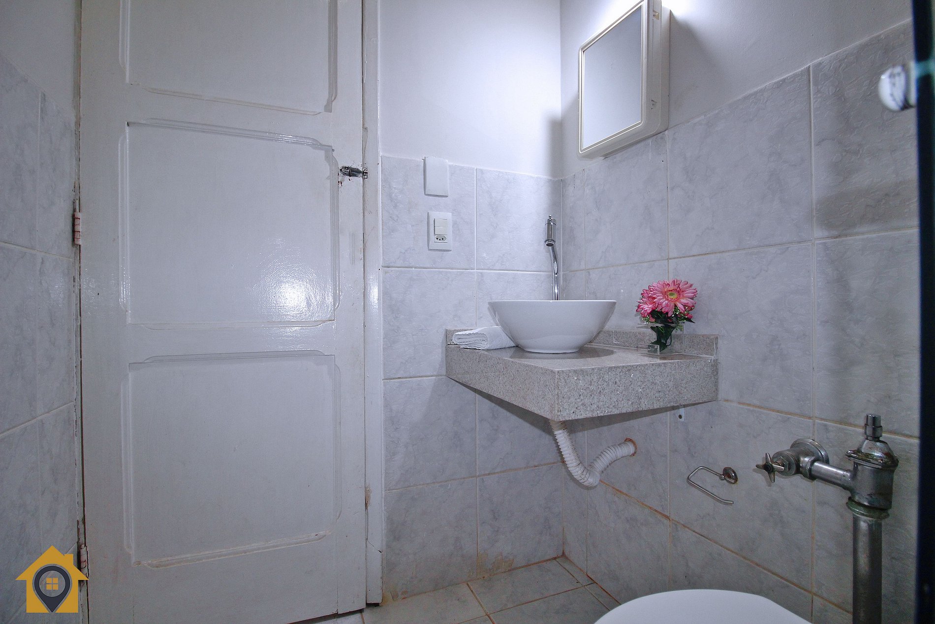 O banheiro dispõe de chuveiro elétrico e espelho. O prédio oferece portaria 24 horas, trazendo mais segurança e tranquilidade.