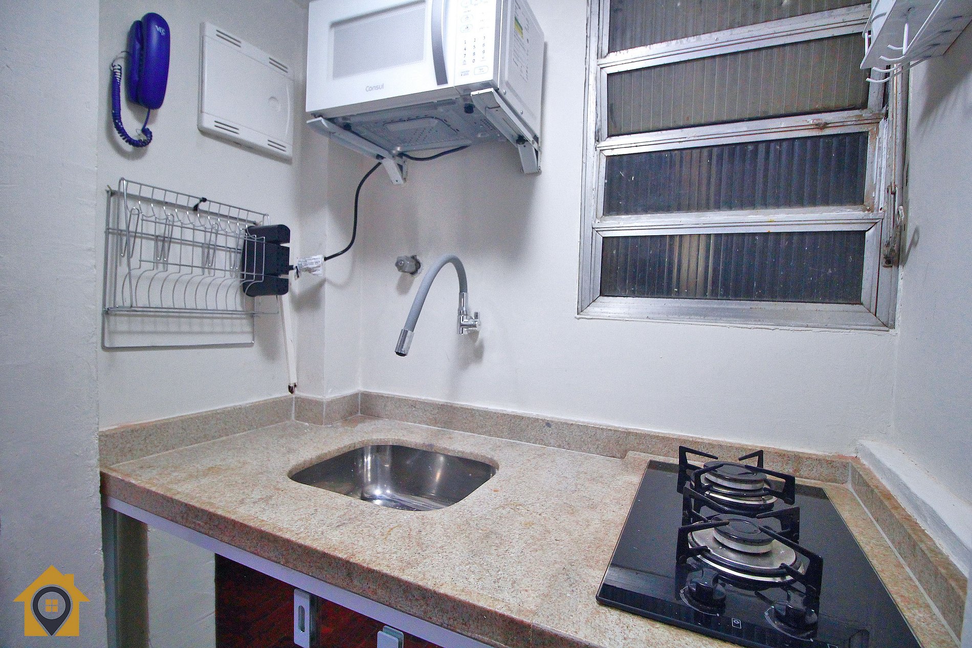 Studio aconchegante para até 4 pessoas, a poucos passos da praia de Copacabana, cercado por farto comércio como mercados, farmácias, padarias, restaurantes e metrô.