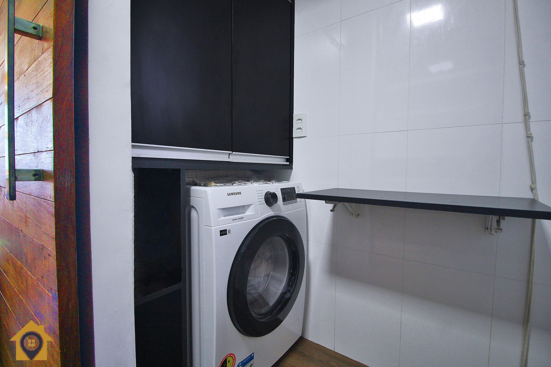 O apartamento conta ainda com área de serviço equipada com máquina lava e seca e tanque, além de vaga de garagem, garantindo total comodidade durante sua estadia.