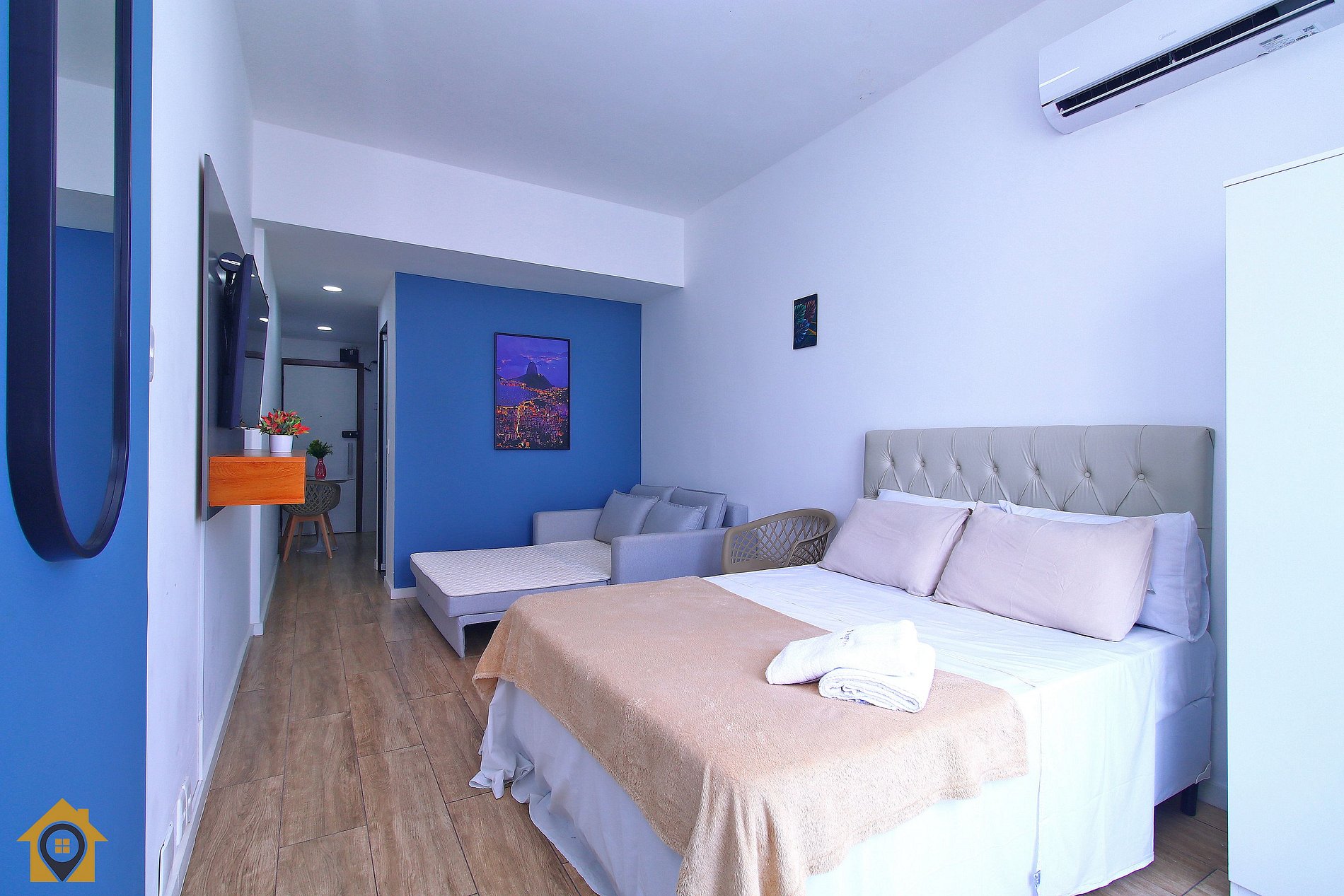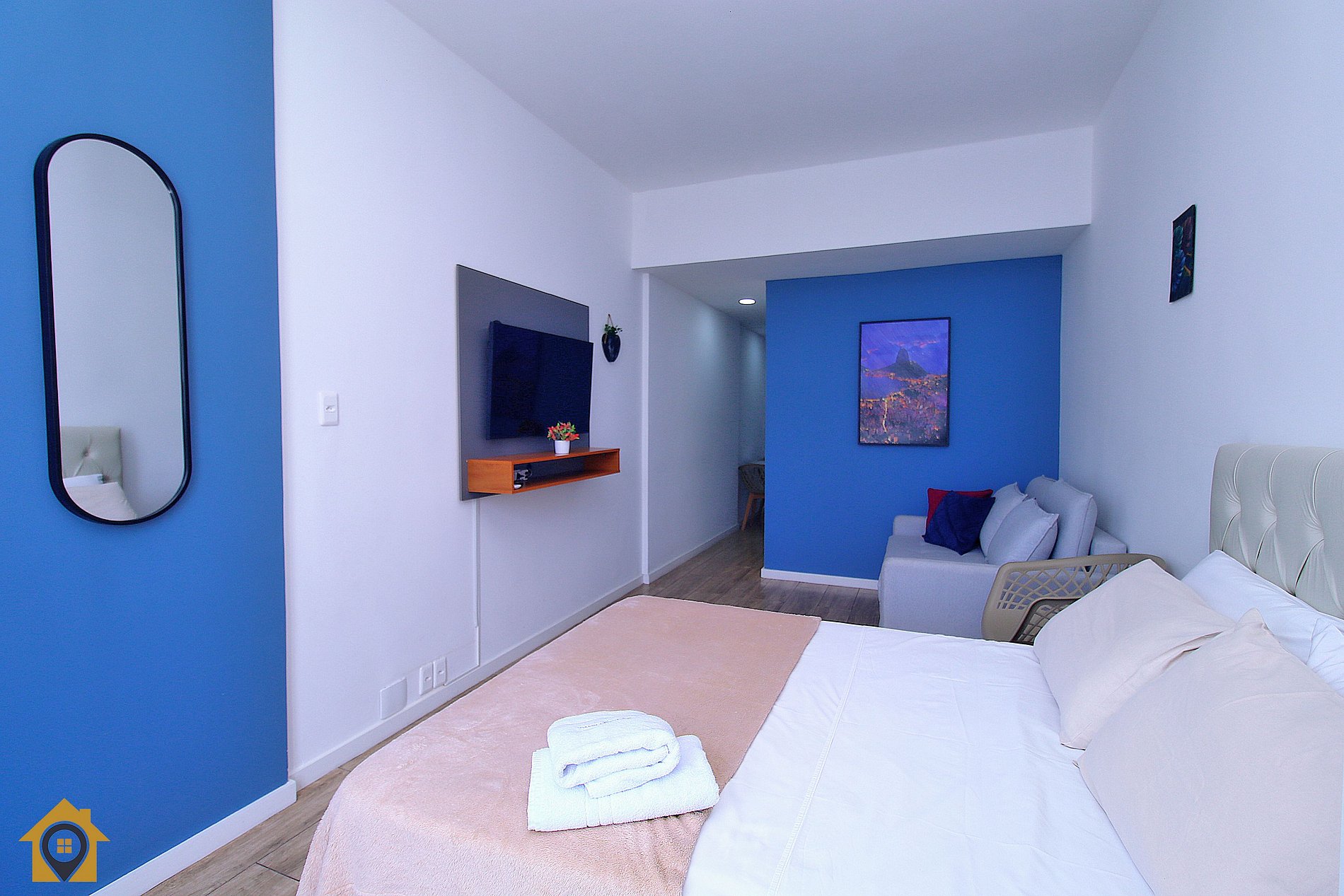 Localização: Posto 2. Próximo a bares, restaurantes e mercados. O prédio oferece portaria 24 horas e entrada por reconhecimento facial. Poucos passos da orla e praia de Copacabana.