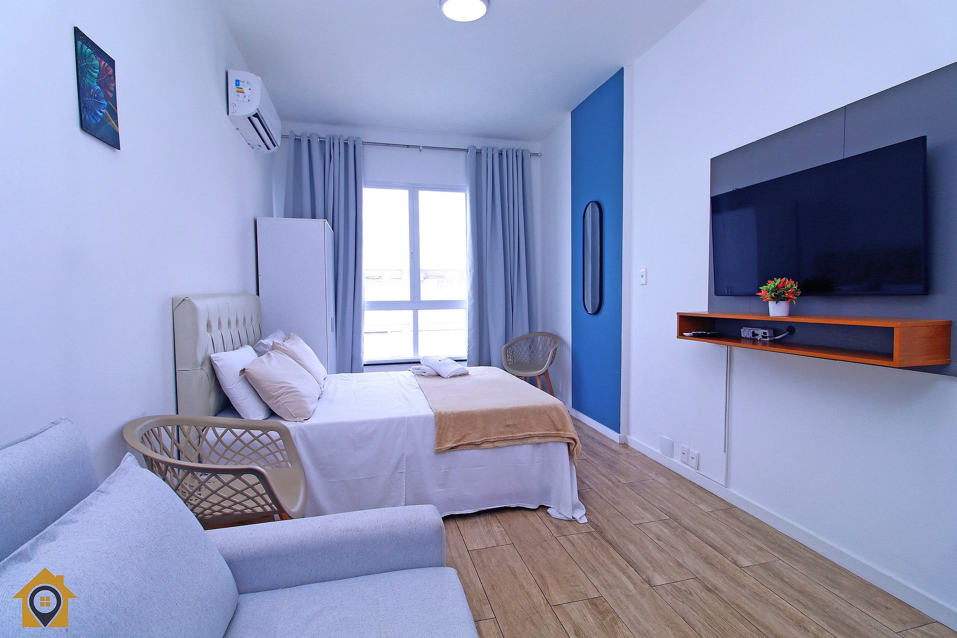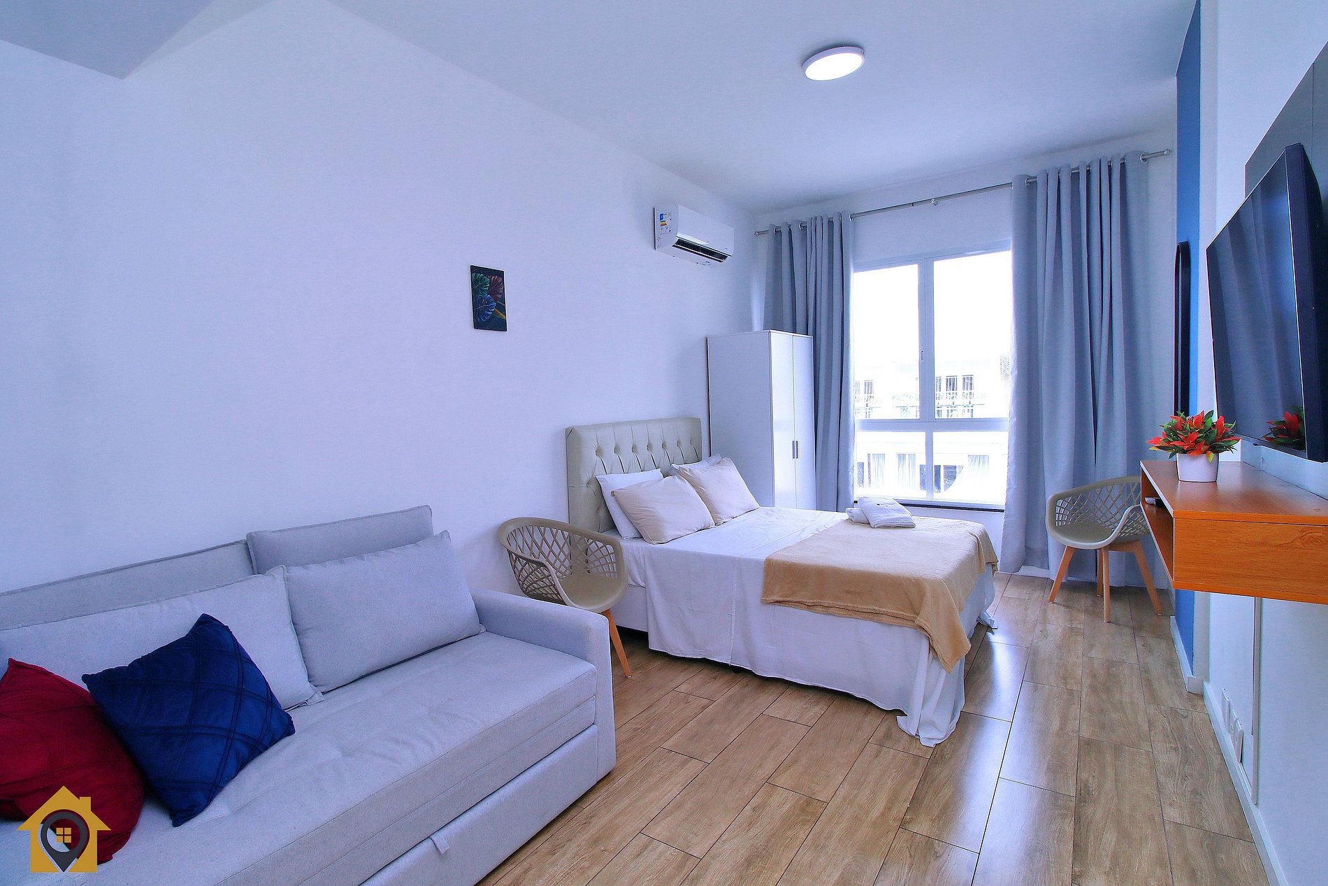 Studio novo com vista mar, ideal para até 4 pessoas, a poucos passos da praia. Composto por quarto, cozinha e banheiro, é moderno e acolhedor. Localizado em área vibrante, próximo a bares, restaurantes, mercados e farmácias. O prédio oferece portaria 24 horas e entrada por reconhecimento facial. Disponibilizamos roupa de cama e banho, garantindo mais conforto durante sua estadia. Uma ótima opção para quem busca relaxar perto do mar!