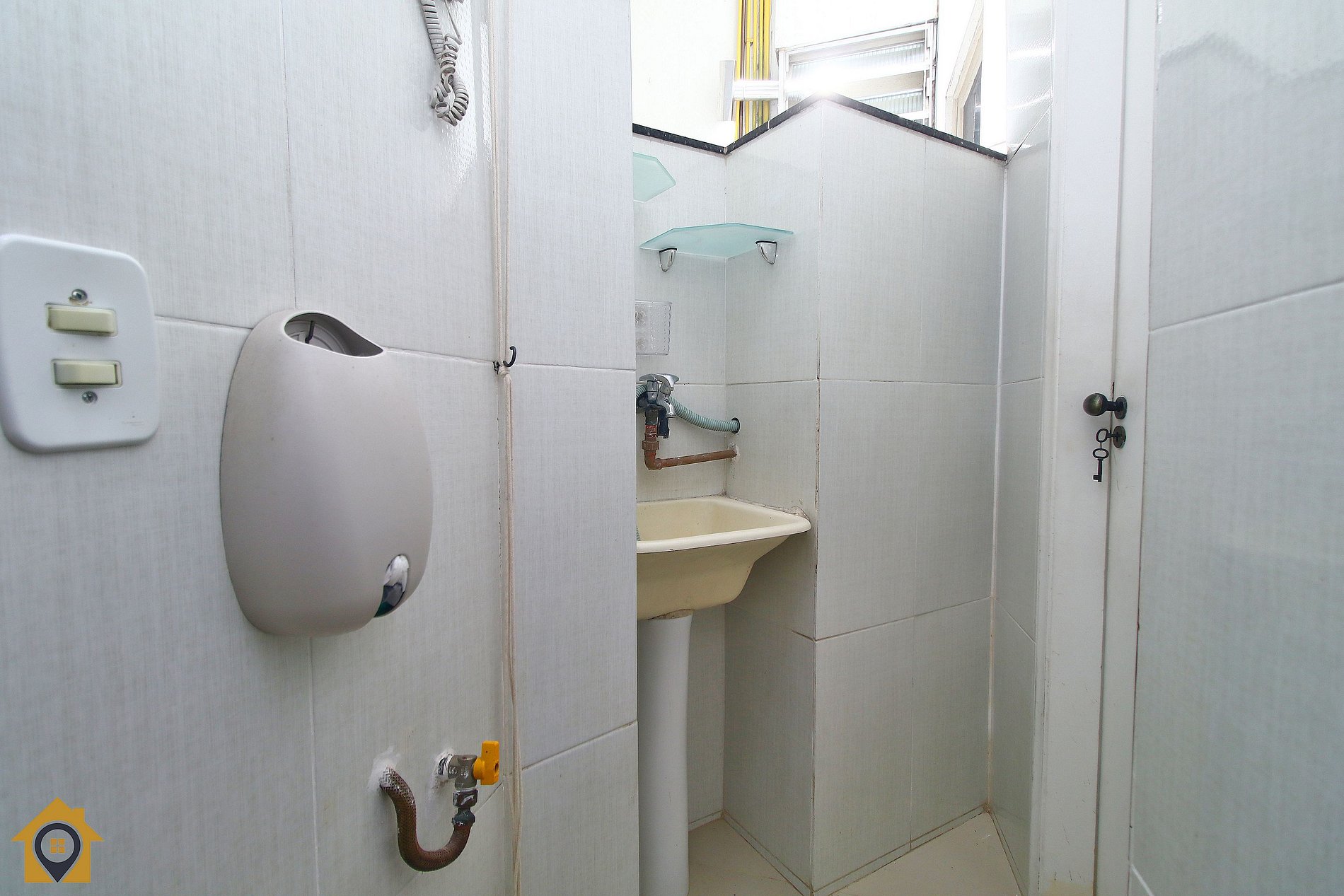 Área de serviço com tanque e varal, além de um lavabo moderno e funcional, perfeito para maior praticidade durante sua estadia.