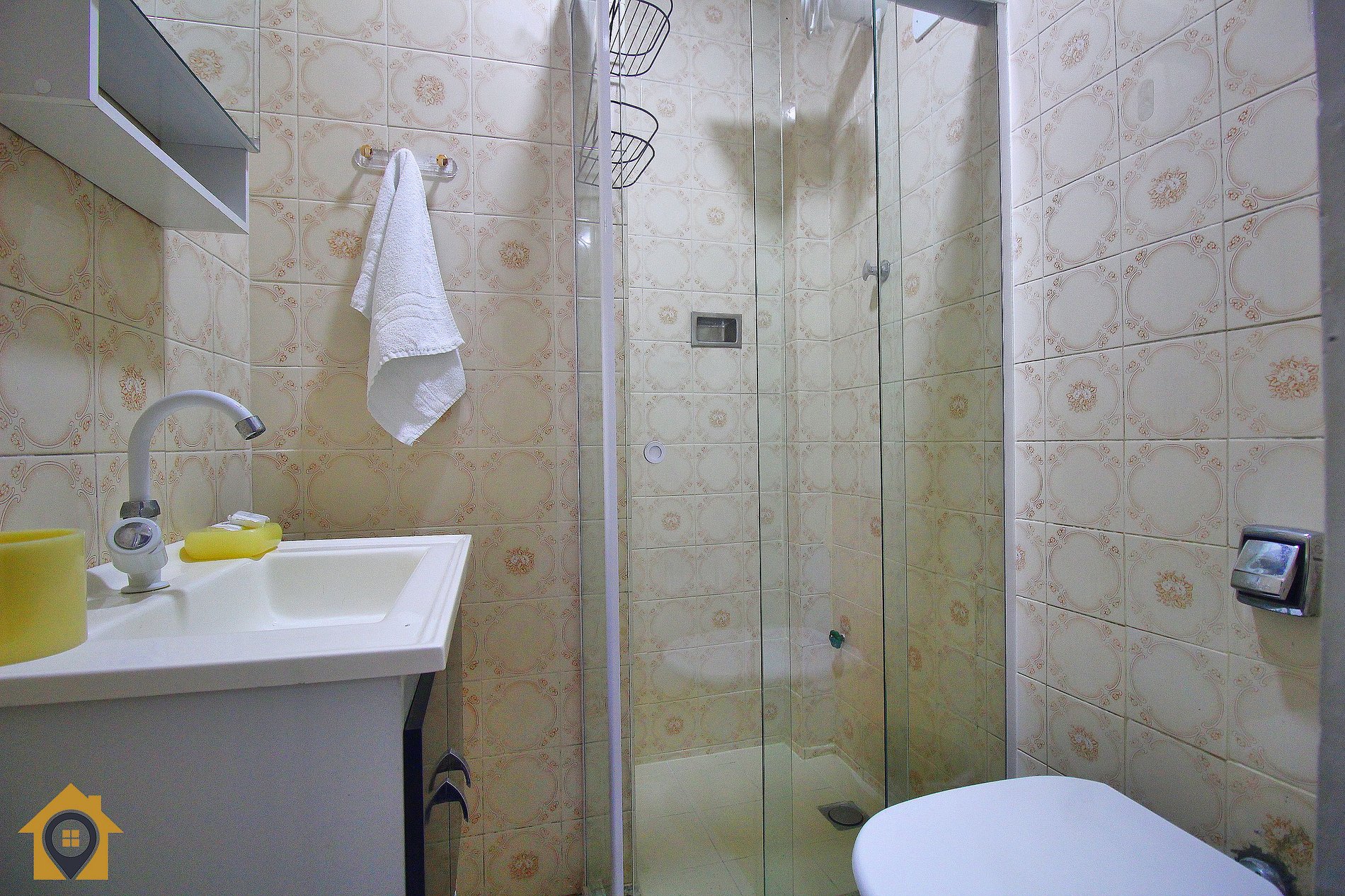 O banheiro é equipado com chuveiro elétrico e tem tudo o que você precisa para um banho relaxante após explorar a cidade.