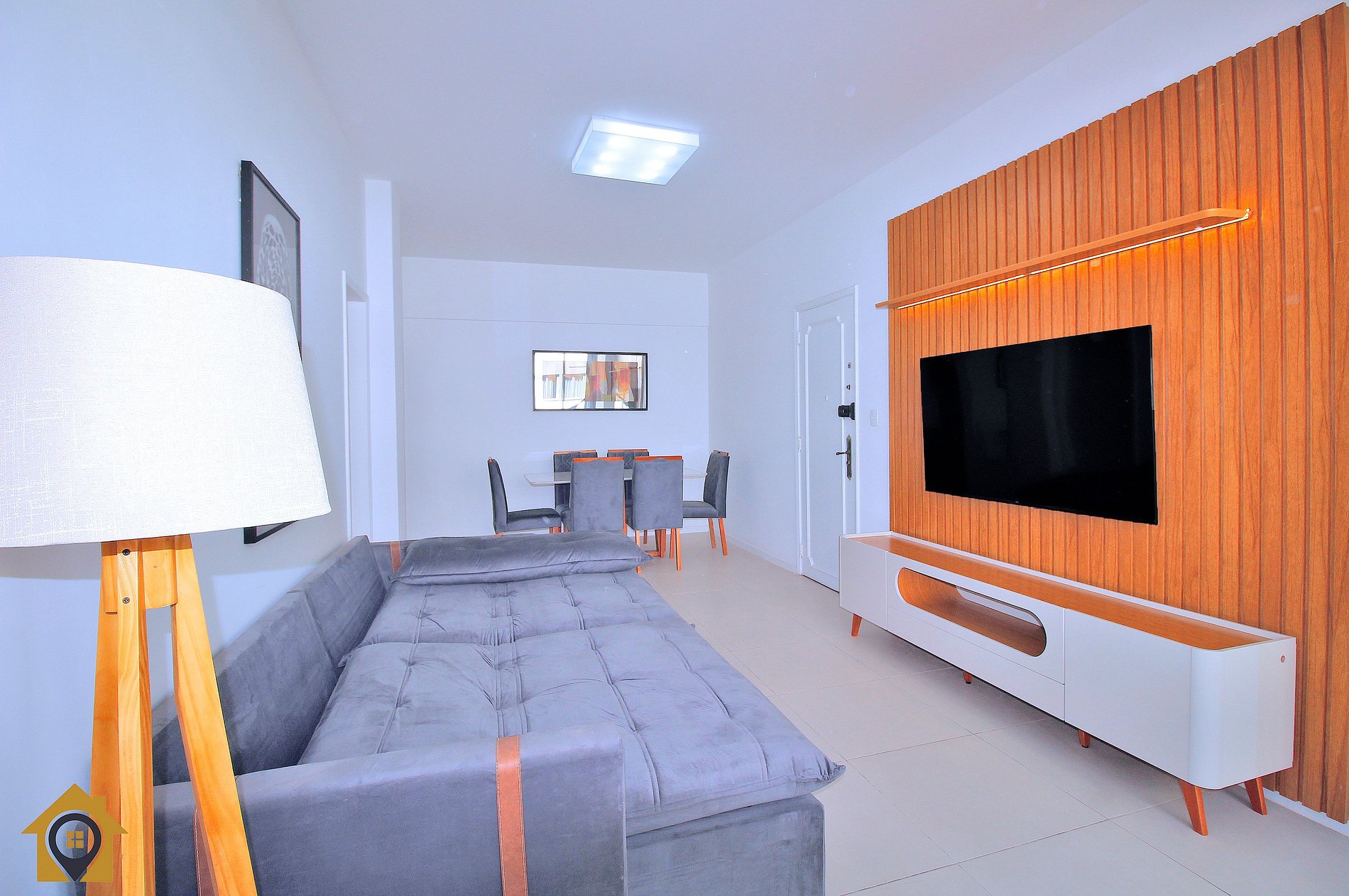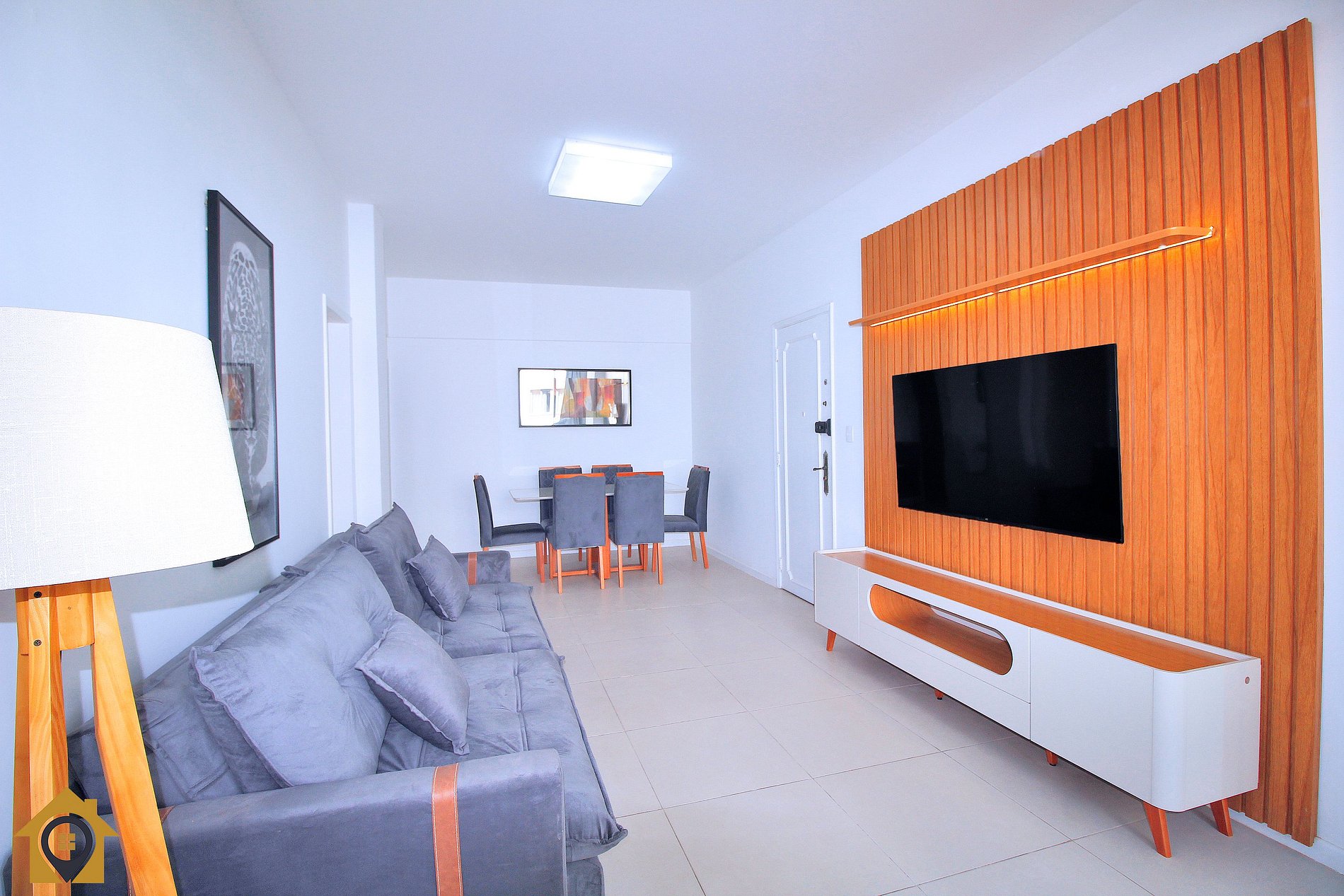 Este apartamento é perfeito para uma estadia confortável e prática. A sala é estilosa e aconchegante, equipada com um sofá-cama bastante confortável para até 2 pessoas, ar-condicionado, luminária, Smart TV de 60 polegadas e uma rede de descanso para relaxar. A sala também conta com uma mesa de jantar com 6 cadeiras, ideal para refeições em grupo.