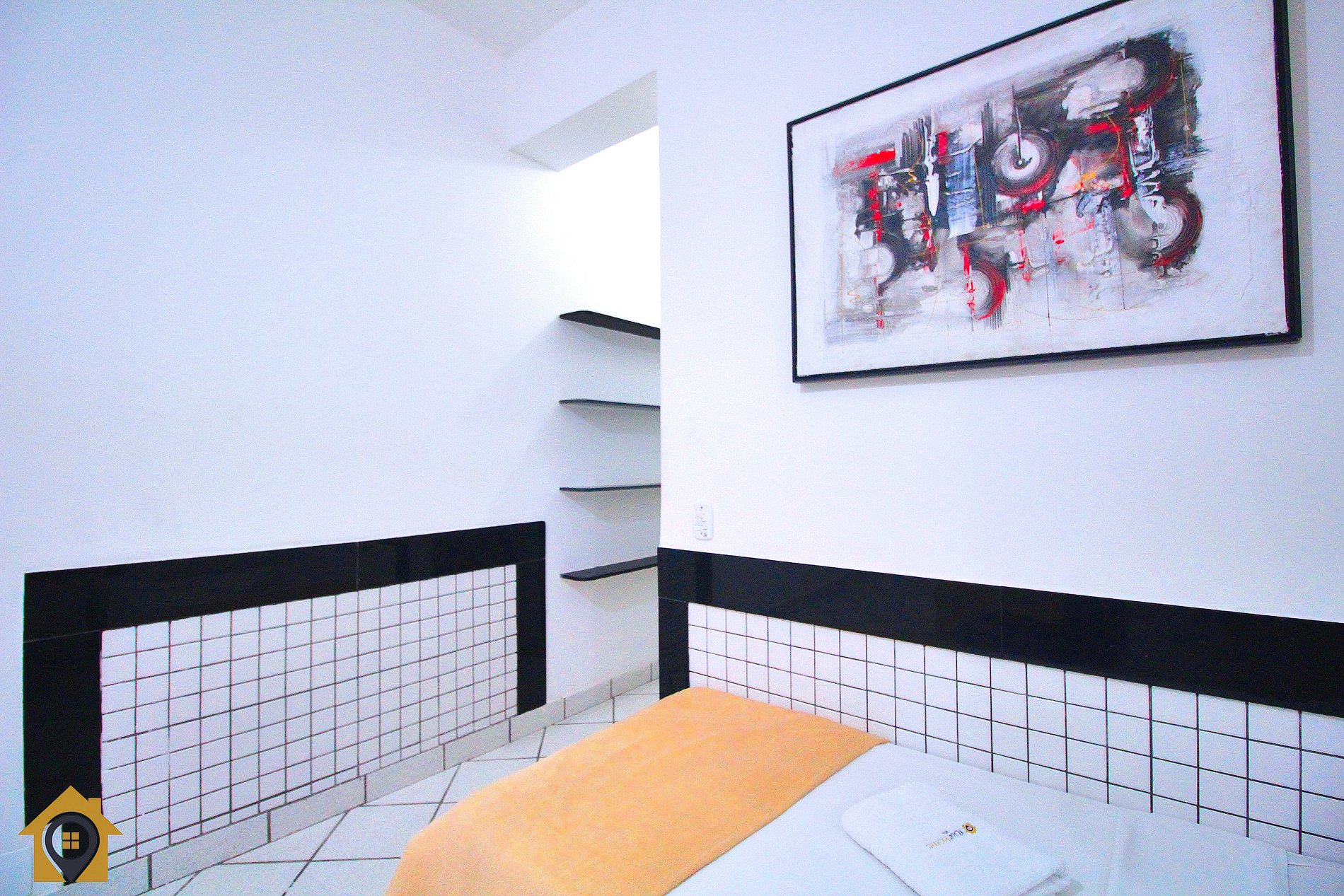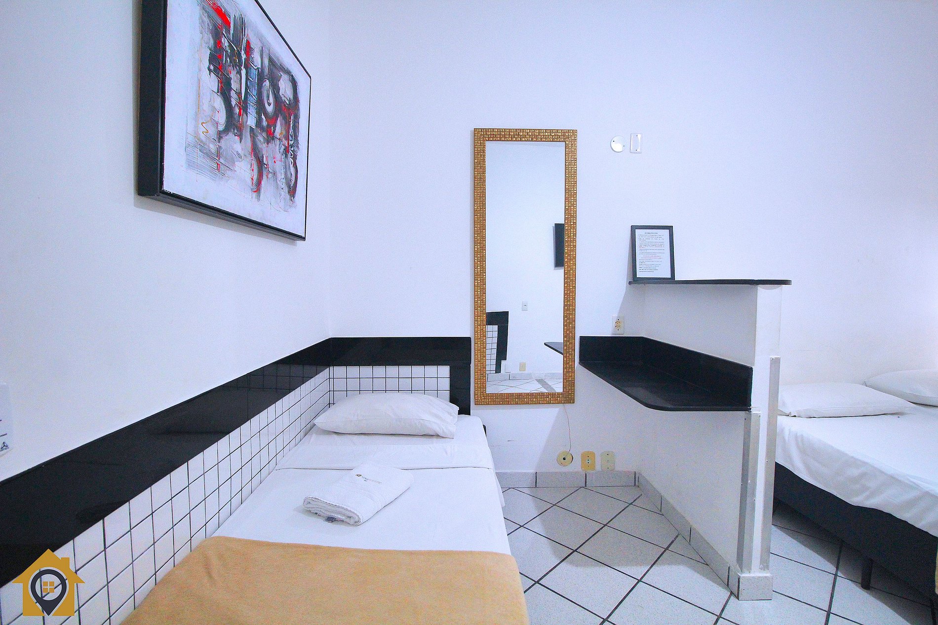 Dividido em quarto, cozinha equipada e banheiro, com portaria 24h. Fornecemos roupas de cama e banho para sua comodidade. Portaria 24 horas.